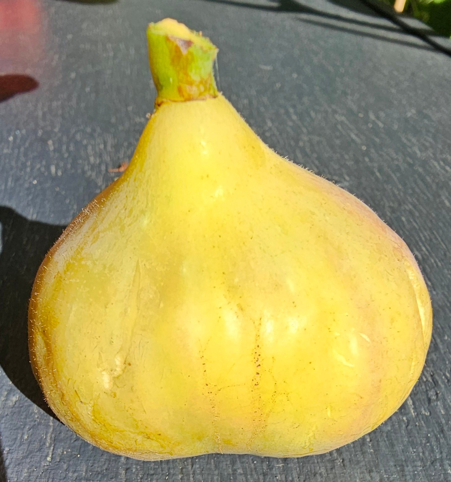 Hier eine Fundfeige aus meiner Gegend. Hätte bestimmt noch 1-2 Tage gebraucht. War aber auch so schon ganz gut vom Geschmack her. Erinnert mich an eine Dotatto/Kadota.