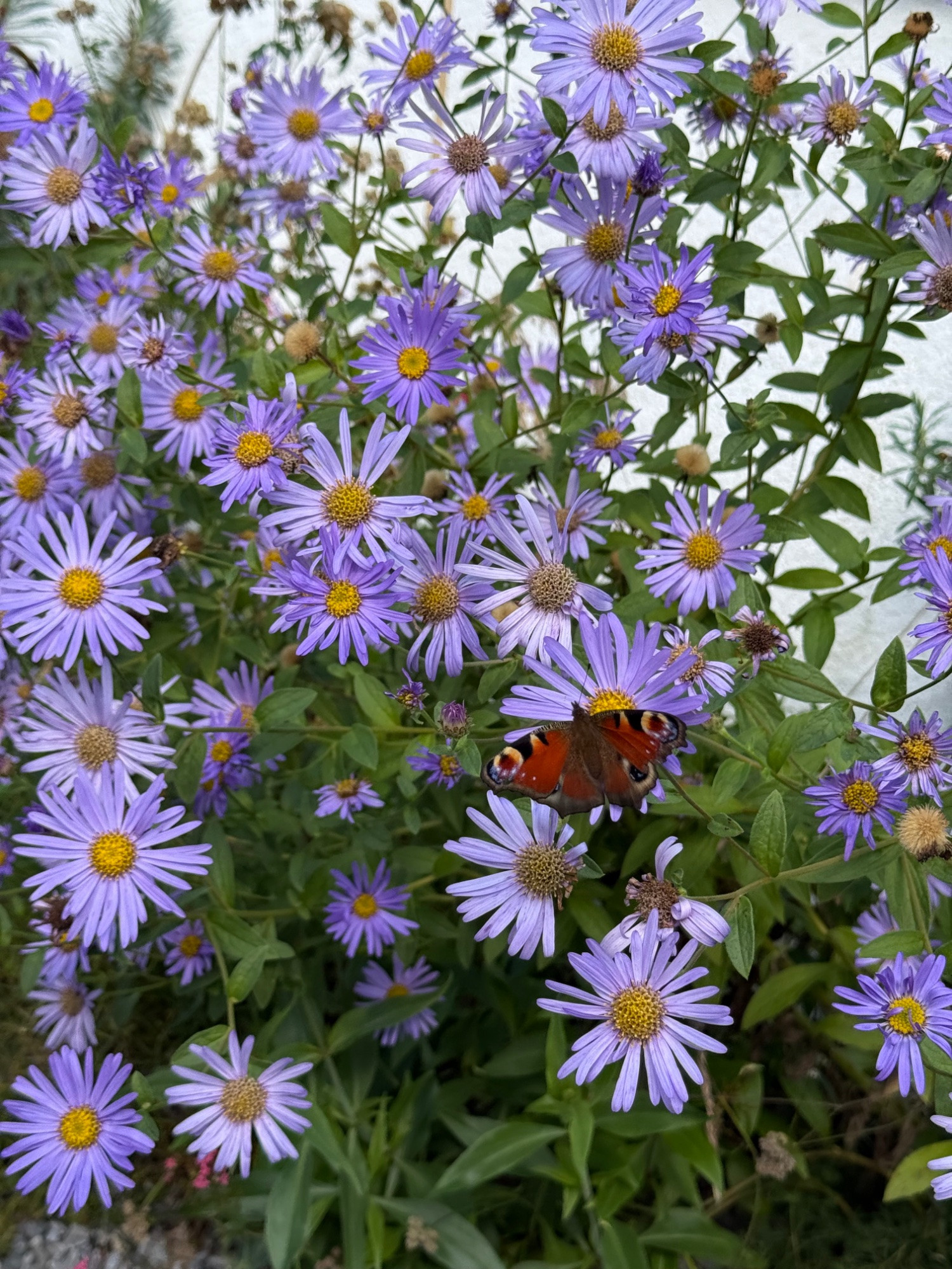 Interessanterweise war die Aster Frikartii den ganzen Sommer über für die Schmetterlinge eher uninteressant, da es wohl bessere Alternativen gab. Jetzt sind die Falter anspruchsloser geworden, und ich sehe immer mehr von ihnen auf dieser Pflanze.
