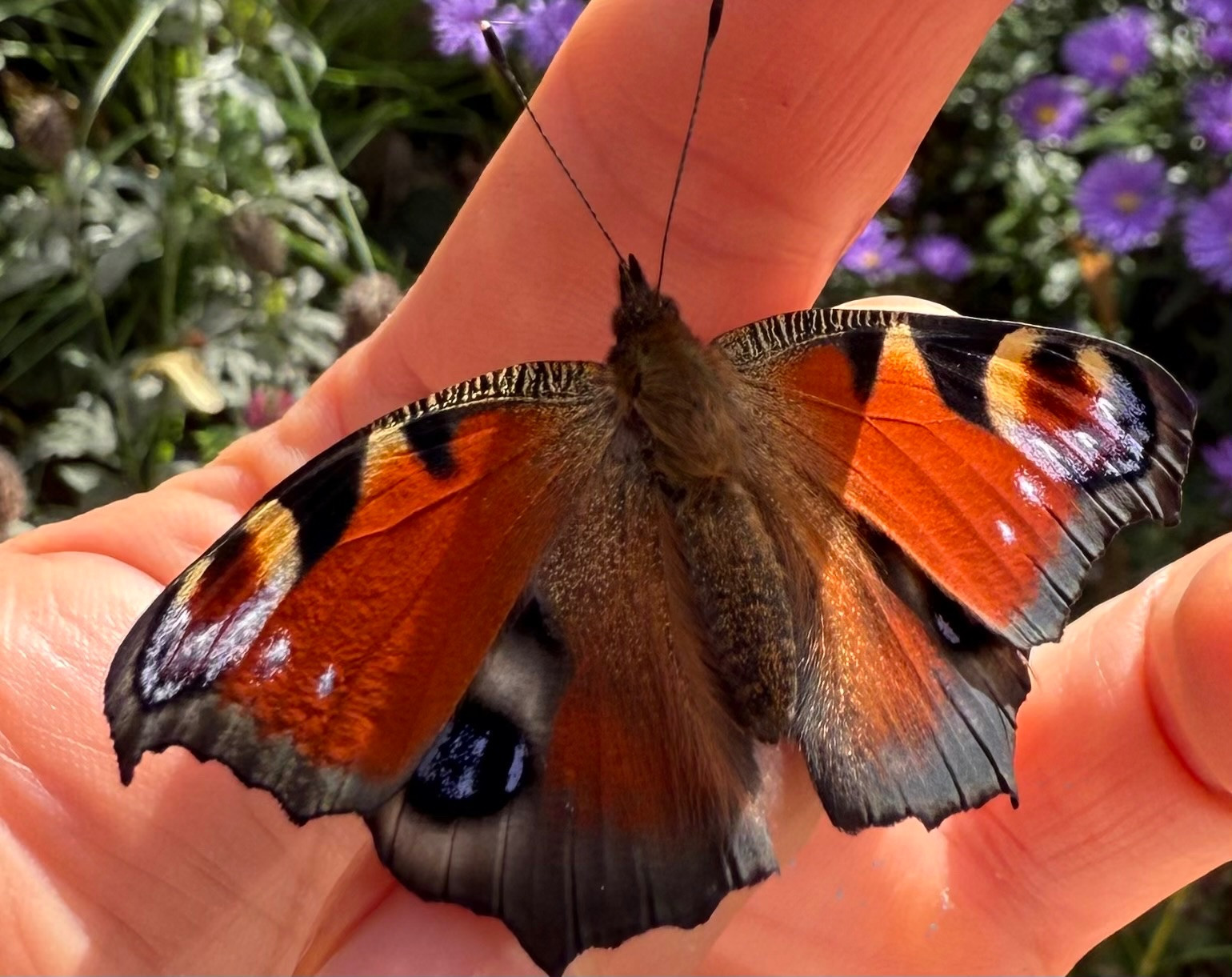 Gestern habe ich erste Mal bei uns Pfauenauge gesehen.
