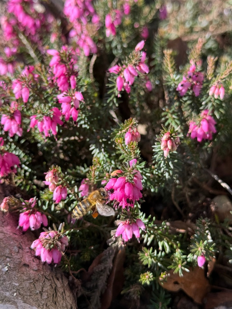 Erica carnea wirklich toll aber im Wurzeldruck der Fichte mit voll sonnigen Stand, ist die Blüte deutlich kurzlebiger
