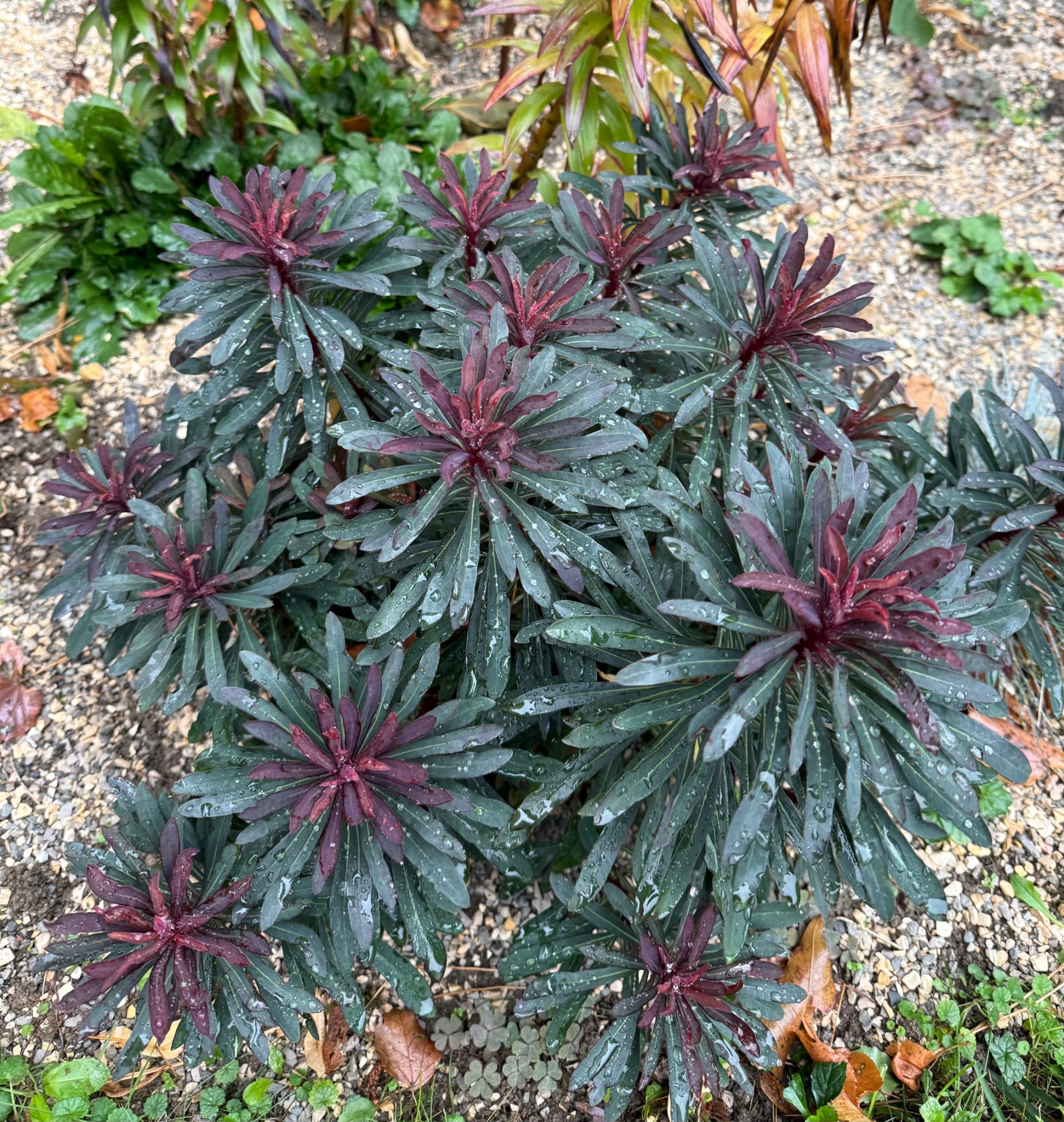 Bei mir ist auch so, meine amygdalloides purpurea ist jetzt 4 Jahre alt und wächst jetzt rückwärts. Hat nur 4 Sämlinge produziert. Ich muss die jetzt unbedingt ersetzen, sonst gibt dort Löchner im Beet nächstes Jahr. Wahrscheinlich pflanze ich ssp. robbiae ein, sie ist wohl robuster.