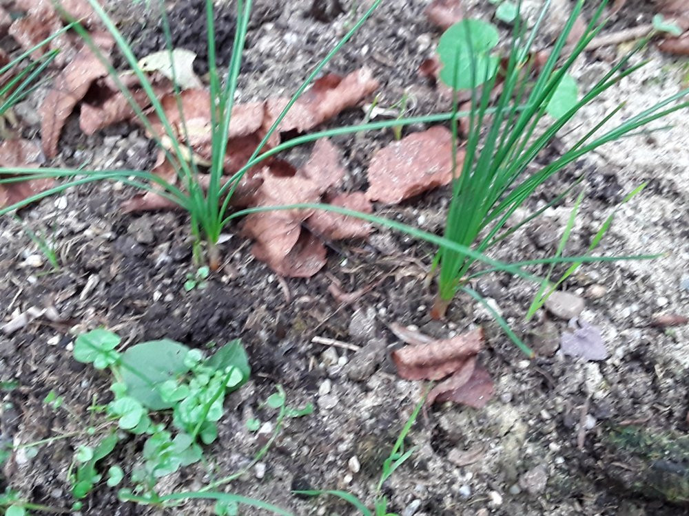 Jetzt (im vierten Jahr) habe ich gesehen, dass die ersten Zwiebeln schon angefangen haben auszutreiben.