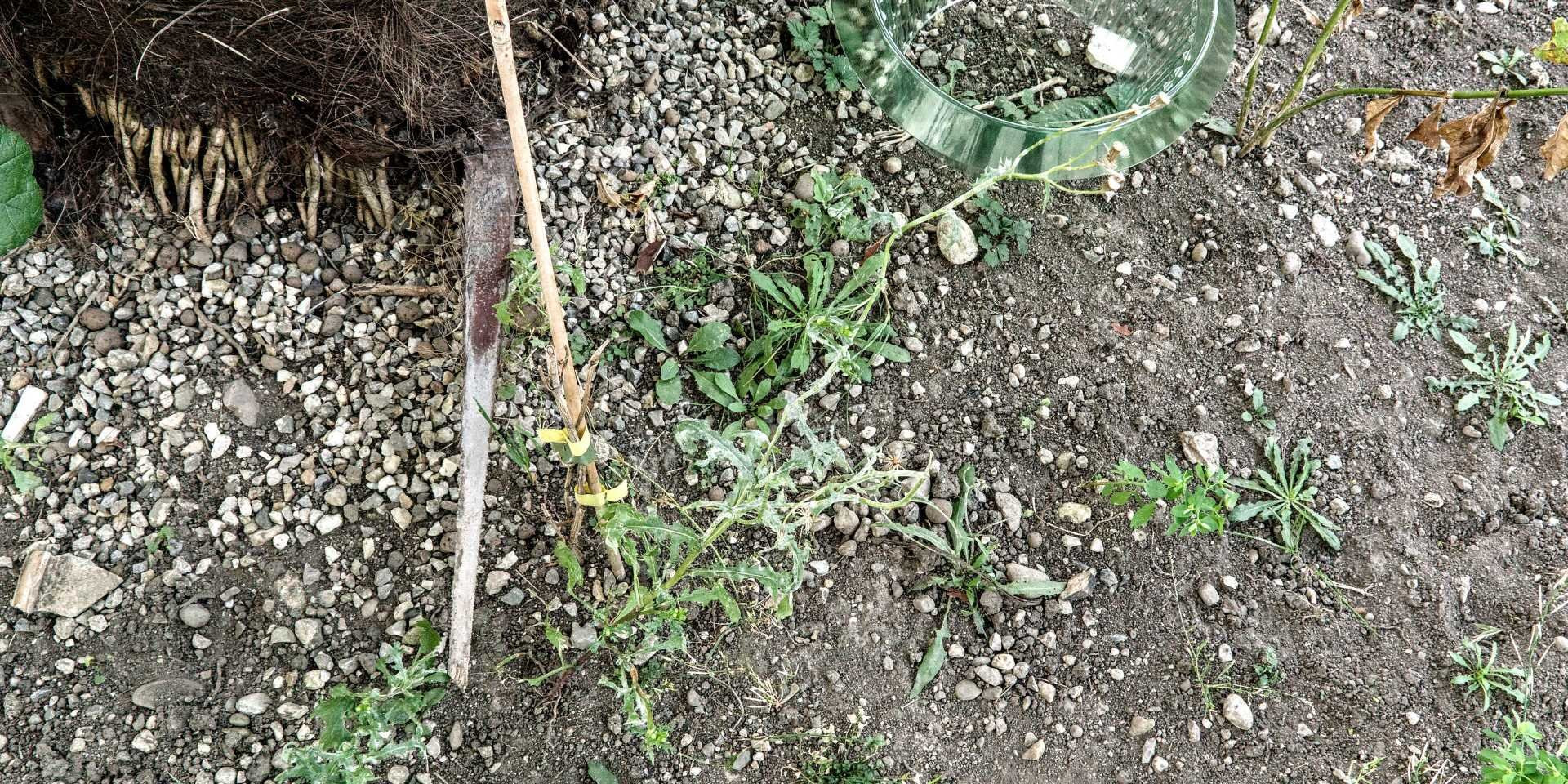 Die Ackerkratzdistel war über der Erde über 1m lang, aber im Boden gab es nur ein paar kurze Wurzeln, vielleicht 3cm lang. Hoffentlich ist alles weg.