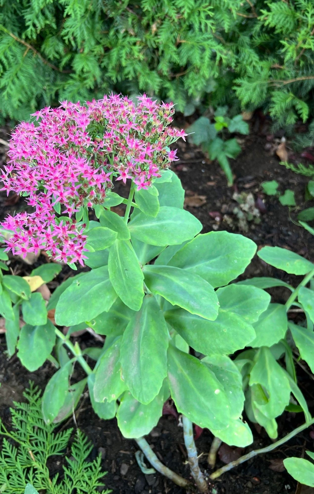 Schwer zu sagen, aber wenn ich mir meine Hohen Fetthennen so anschaue, sind das wahrscheinlich auch 'Herbstfreude' und 'Brilliant'. Die sehen beide sehr ähnlich aus, wenn ich genau vergleiche, hat 'Herbstfreude' mehr rostrote Blüten und tendenziell etwas kleinere Blütendolden, während 'Brilliant' ein wenig mehr ins Pinkfarbene tendiert und insgesamt noch etwas wuchtiger erscheint.
