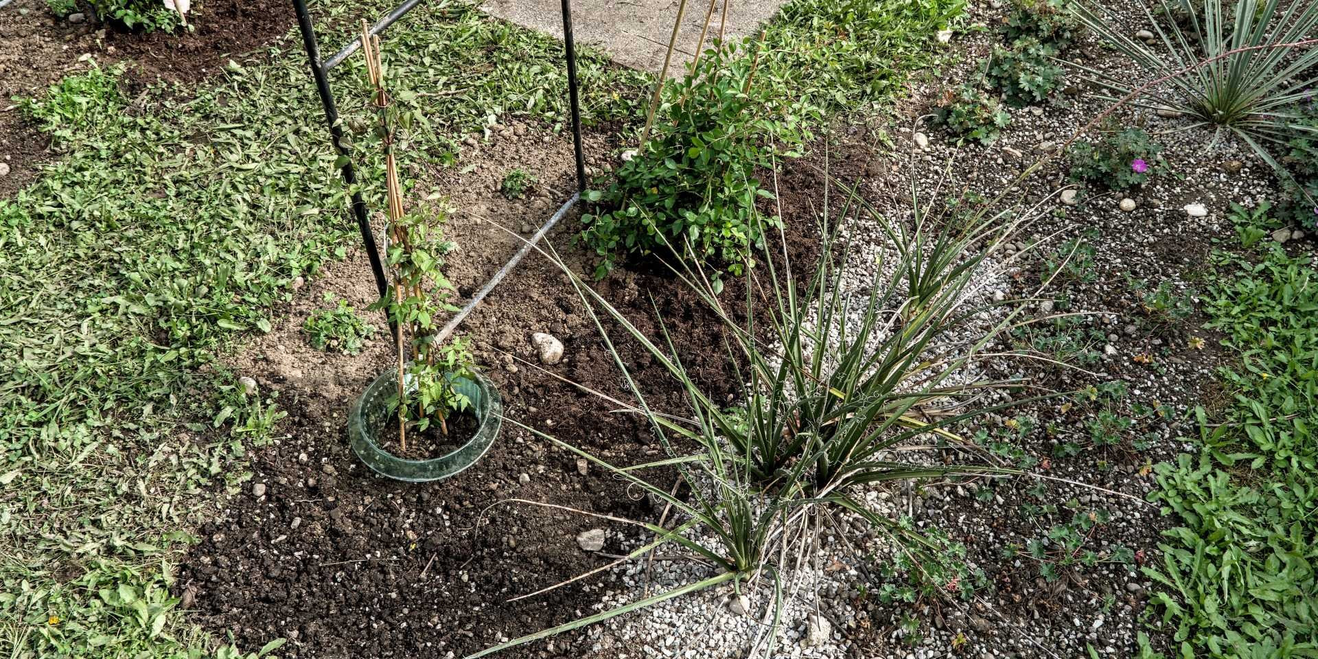 Ich habe alle Pflanzen beim Rosenbogen entfernt und neue Planzen gesetzt.