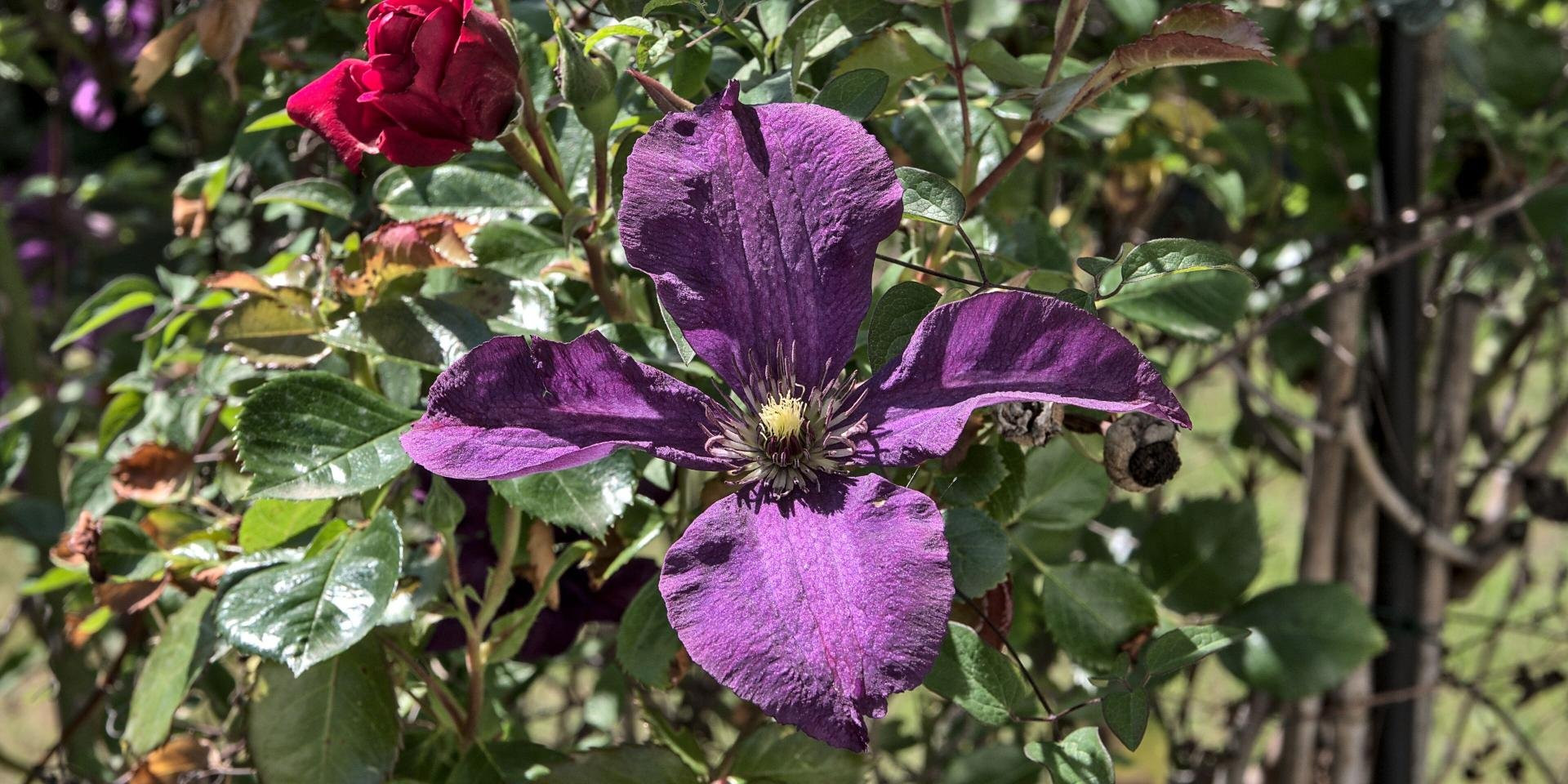 Die Clematis hat sich da irgendwie durchgewurstelt, leider gibt es nur Blütendetails und nicht im Überblick.