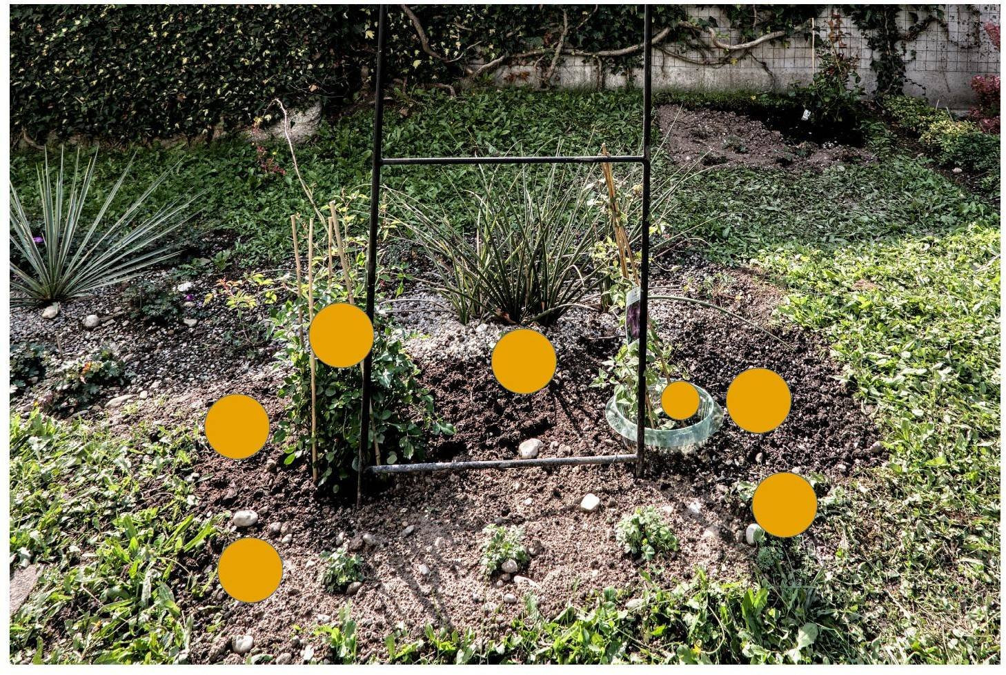 Die Idee ist einen Abstand von ca. 20cm zu haben 1 Pflanze in den Schneckenkragen hineinzusetzen und 1 direkt auf der Südseite vor die Rose. Bis die Bodendecker gewachsen sind, stelle ich mir vor beim Schneckenkragen irgendwie ein Vlies hinzugeben um die Clematis abzuschatten.
