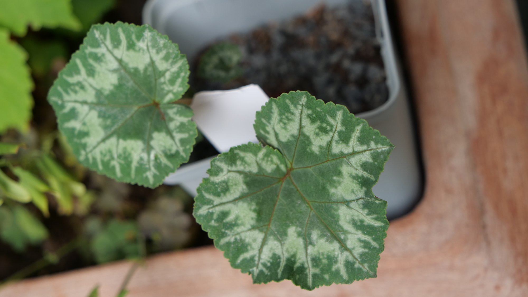Im vergangenen Jahr habe ich dann mal wild eingekauft und vor allen Dingen nach schönen Blattzeichnungen gesucht. Da zeigen sich jetzt auch die ersten. Sind halt noch kleine Pflänzchen: