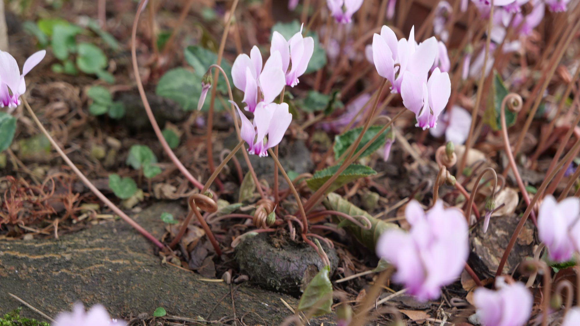 Dieses Foto gefällt mir neben den gezeigten C. crassifolium besonders gut. Die einzelnen Pflanzen haben genug Platz, um ihre Schönheit zu entwickeln, es herrscht kein wildes Blattdurcheinander und die Sämlinge wurden entfernt, wenn ich es richtig sehe. Ein richtig toller abwechslungsreicher Cyclamenstreifen. Was steht dort, wenn die Cyclamen nicht mehr zu sehen sind?