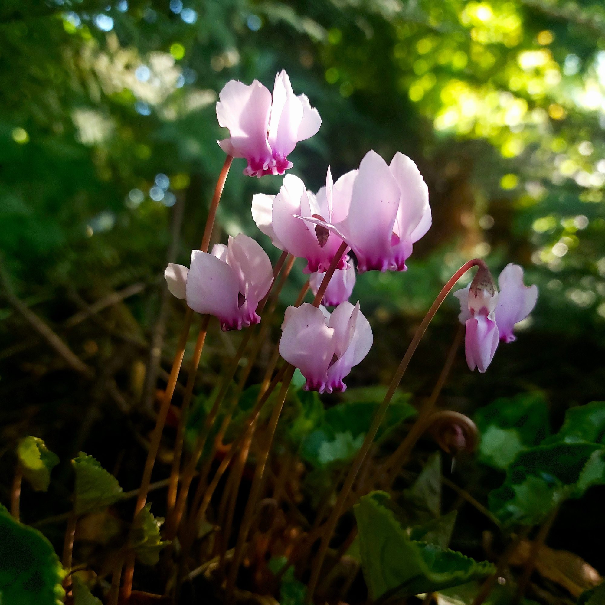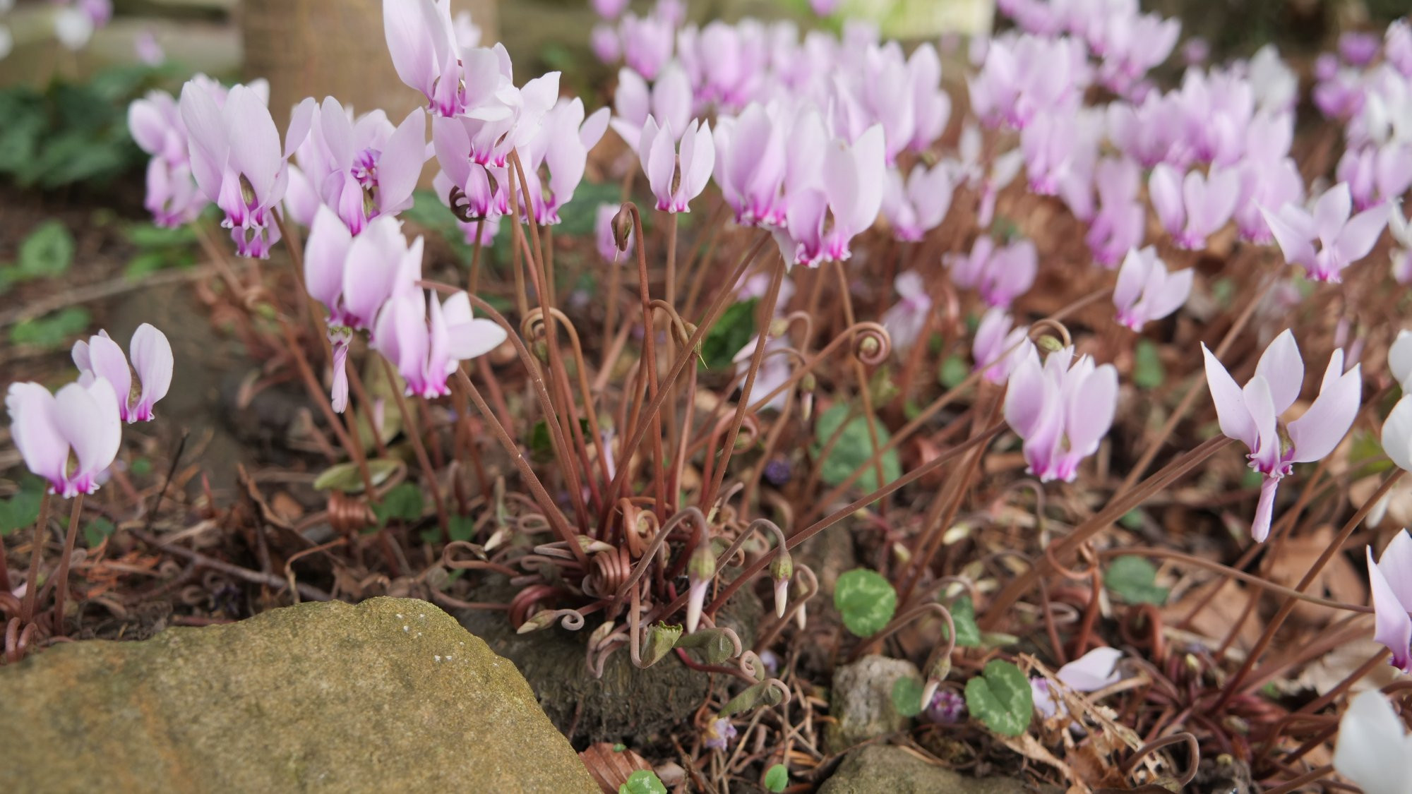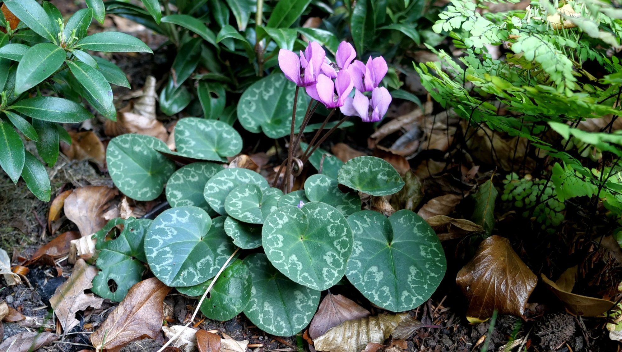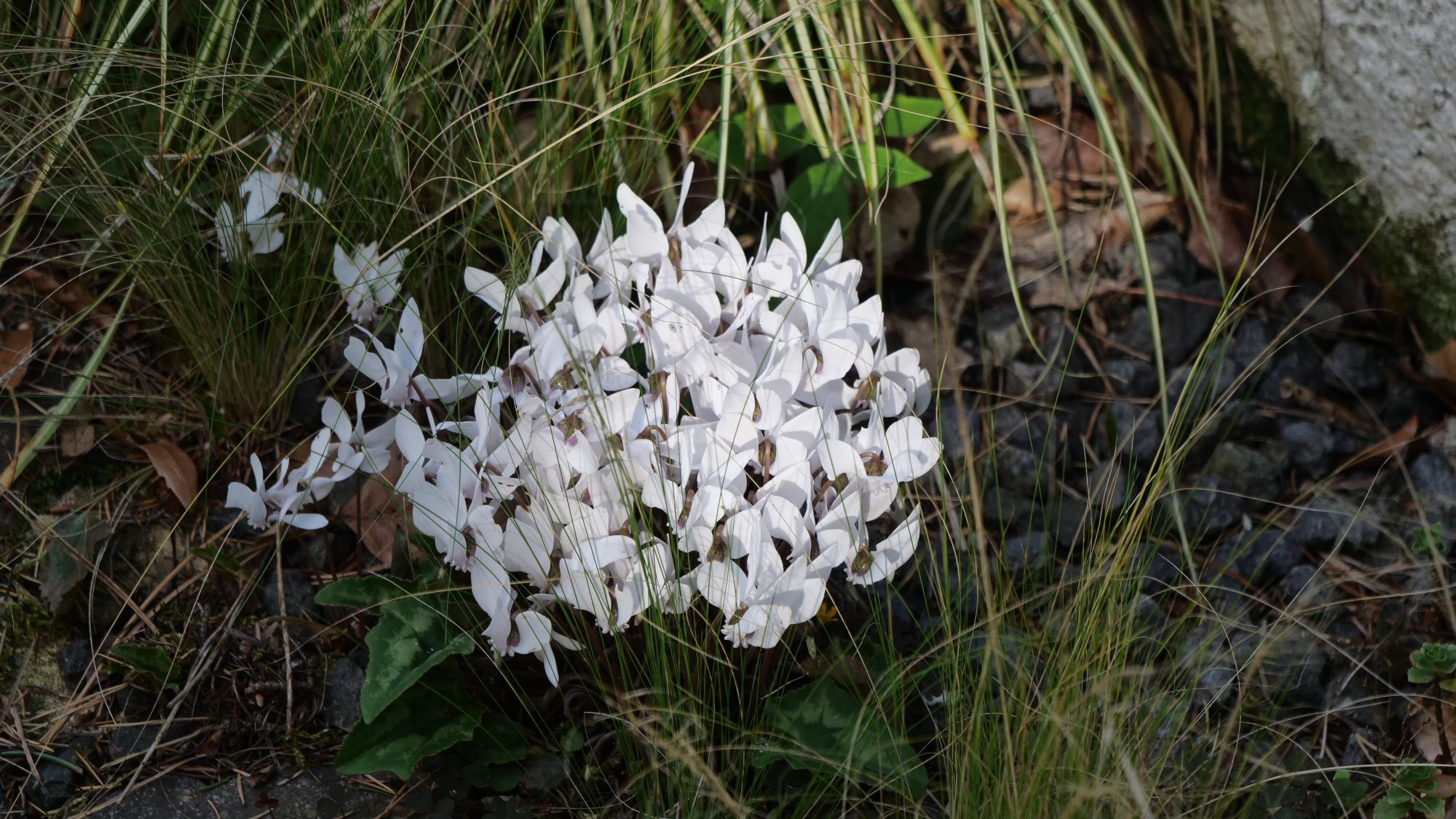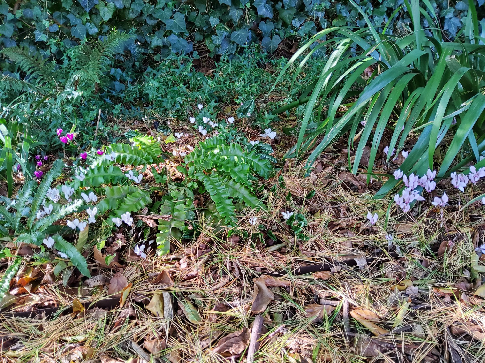 Dieses Foto gefällt mir neben den gezeigten C. crassifolium besonders gut. Die einzelnen Pflanzen haben genug Platz, um ihre Schönheit zu entwickeln, es herrscht kein wildes Blattdurcheinander und die Sämlinge wurden entfernt, wenn ich es richtig sehe. Ein richtig toller abwechslungsreicher Cyclamenstreifen. Was steht dort, wenn die Cyclamen nicht mehr zu sehen sind?