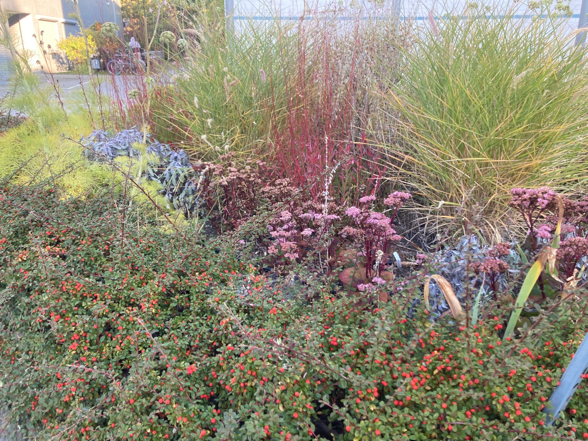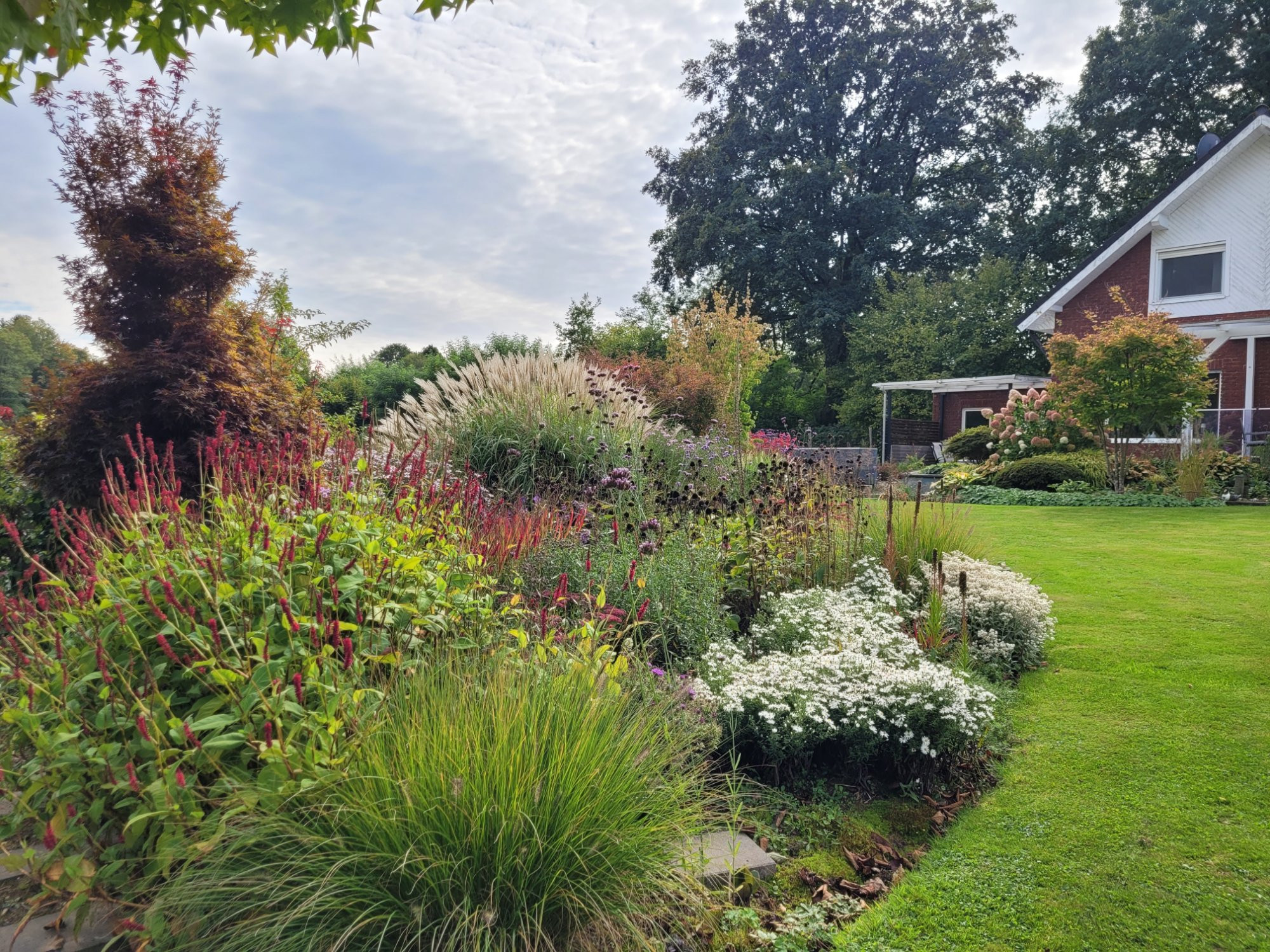 Hier bestimmt nun - neben den Herbstastern und Gräsern- der Kerzenknöterich das Bild... die Show geht bis zum ersten Frost!