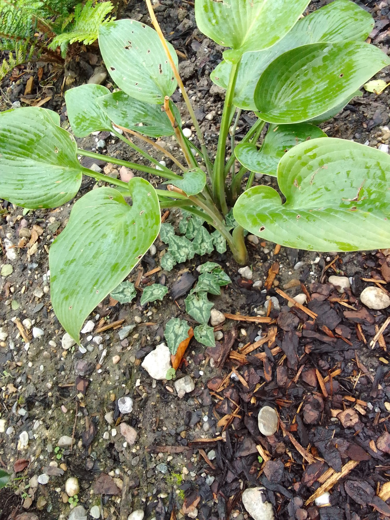 Im Grunde bin ich ja durch mit den Hosta, der neue Garten ist sonnig und trocken. Beim Pflanzentausch hab ich aber bei diesem Sämling von Mikawa-no-Yuki nicht die Finger von lassen können. Ich werde das Dingelchen päppeln. Mal sehen, was draus wird. Die Elternpflanzen sind ja auch spannend.
