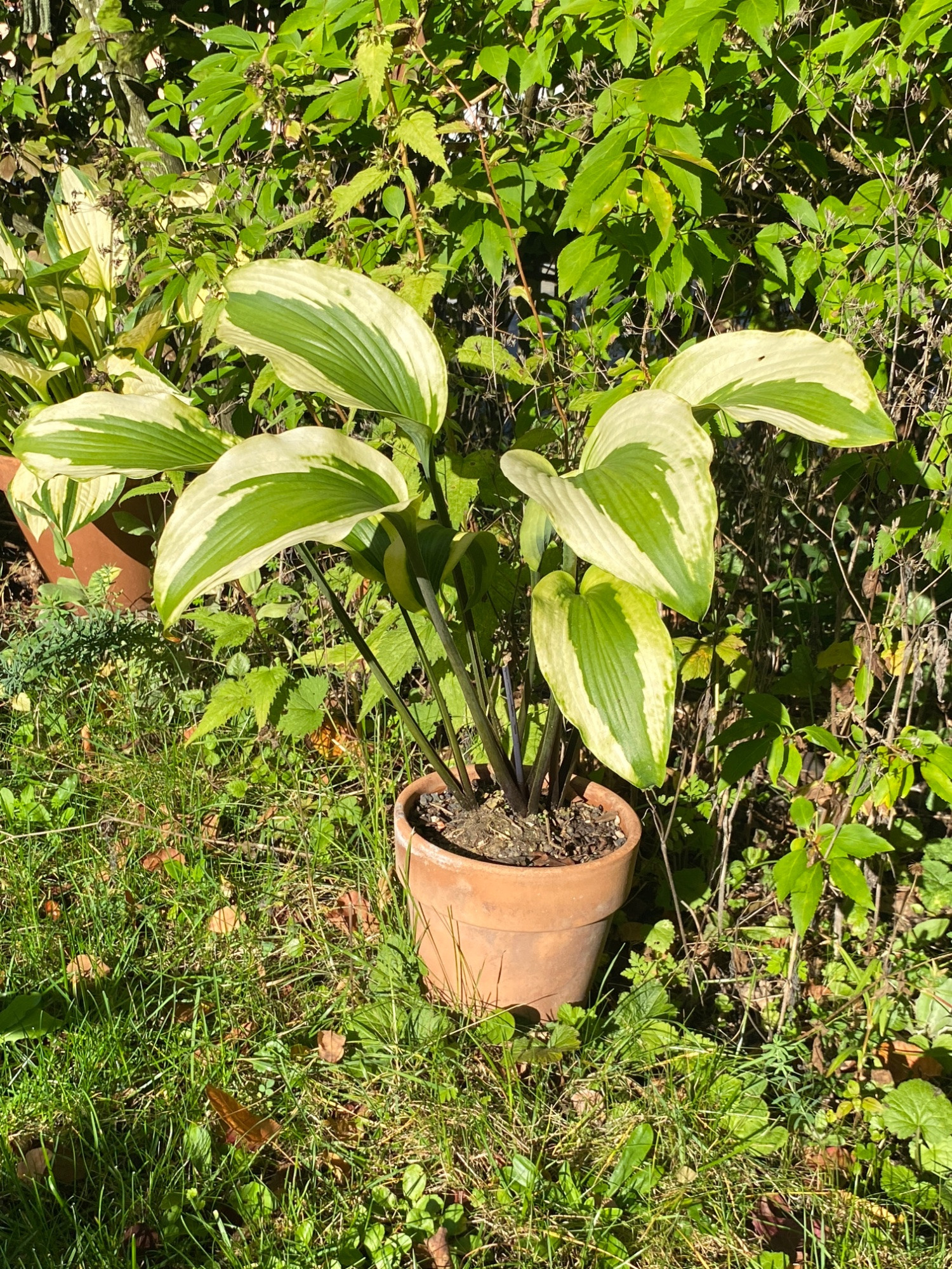 Im Grunde bin ich ja durch mit den Hosta, der neue Garten ist sonnig und trocken. Beim Pflanzentausch hab ich aber bei diesem Sämling von Mikawa-no-Yuki nicht die Finger von lassen können. Ich werde das Dingelchen päppeln. Mal sehen, was draus wird. Die Elternpflanzen sind ja auch spannend.