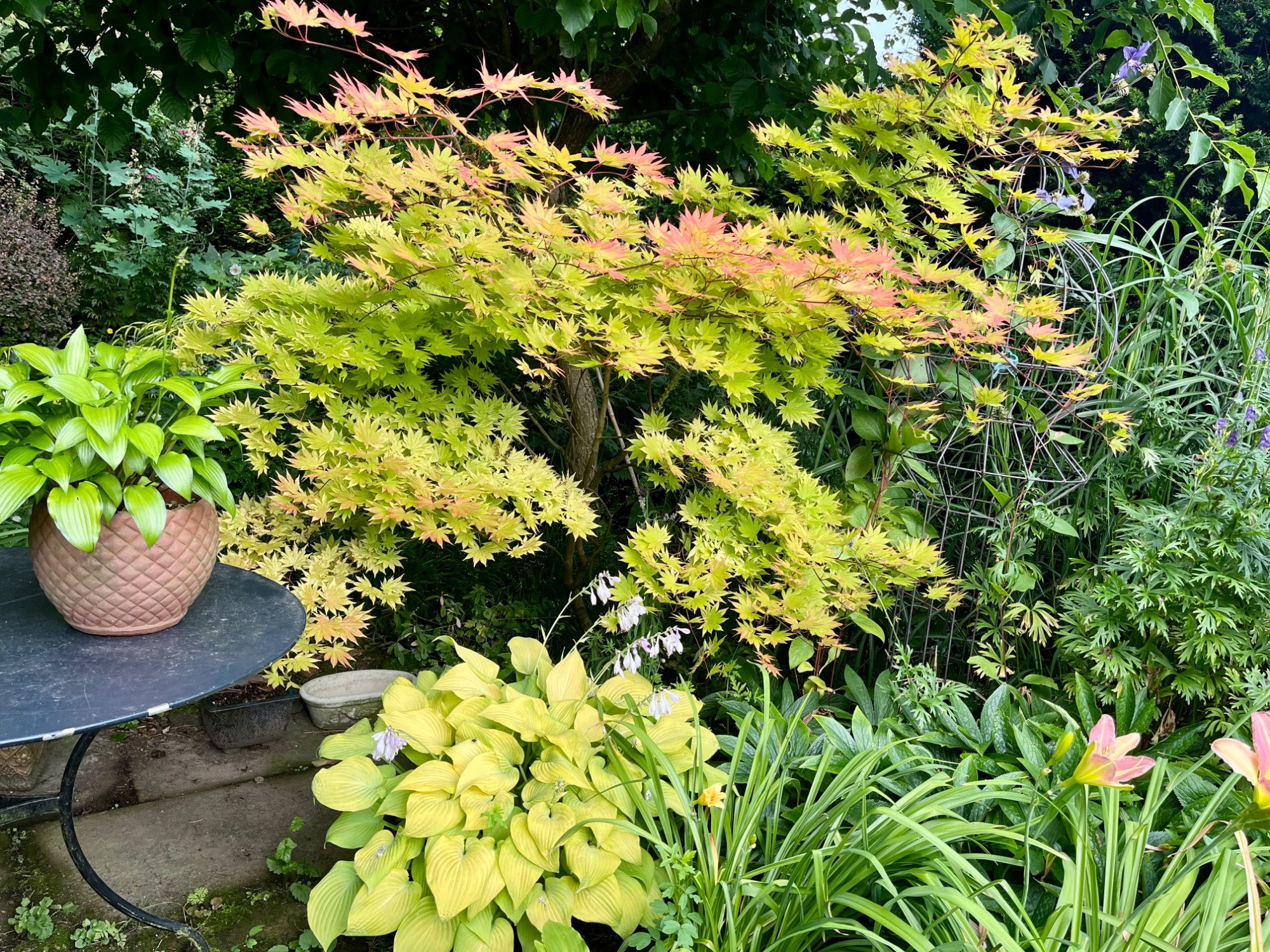 Nachdem der Acer ‚Moonrise‘ sein Sommerkleid angelegt hat, muss ich sagen, mit dem ‚Autumn Moon‘, den ich eigentlich bestellt hatte, kann er nicht konkurrieren.