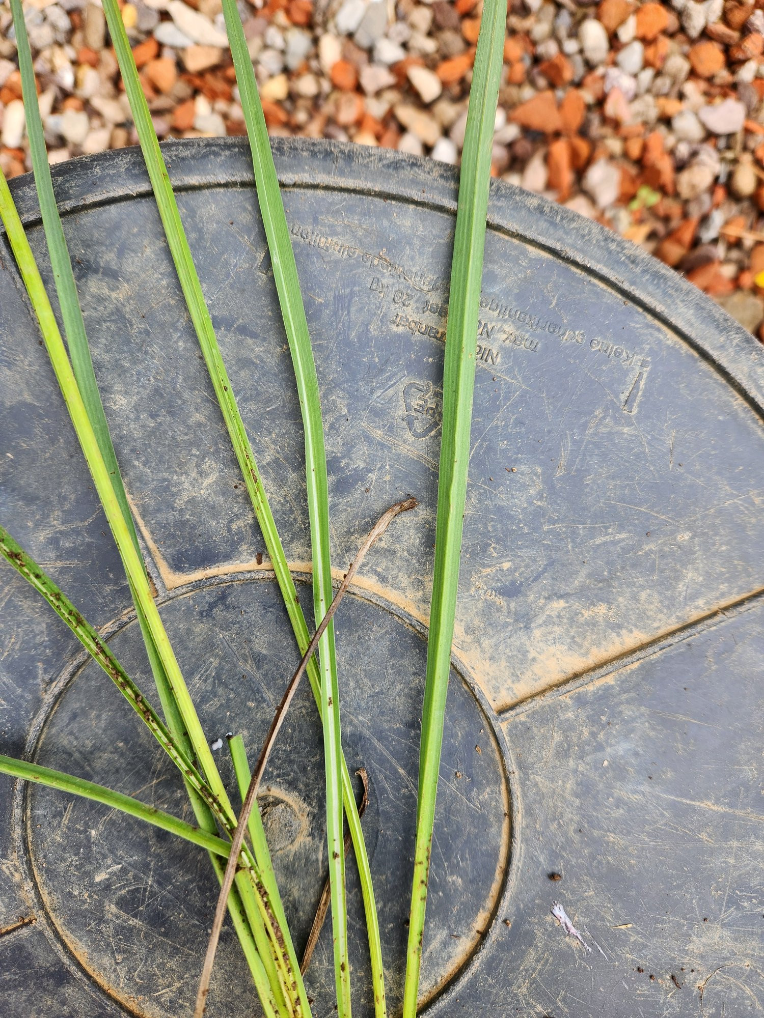 Beim Stauden teilen fiel mir dieses Gewächs in die Hände. Llilienartig, weißer Milchsaft tritt an der Wurzel aus. Die Blätter haben einen dezenten weißen Mittelstreifen. Ich weiß nicht, ob man das auf den Fotos erkennen kann.