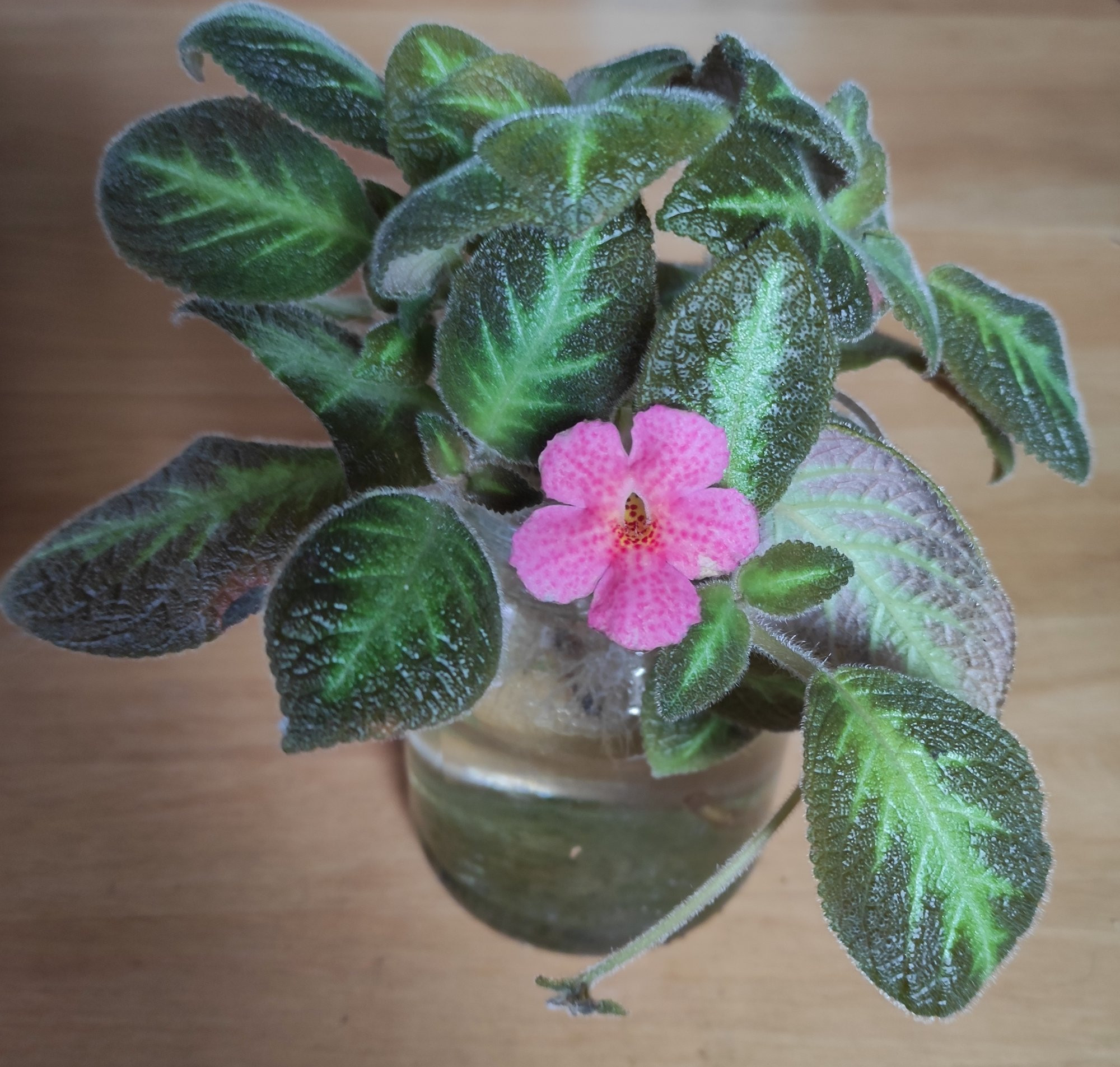 Bei den meisten Episcien spricht mich die Blattzeichnung mehr an als die Blüten. Hier die Sorte 'La Soledad Green'