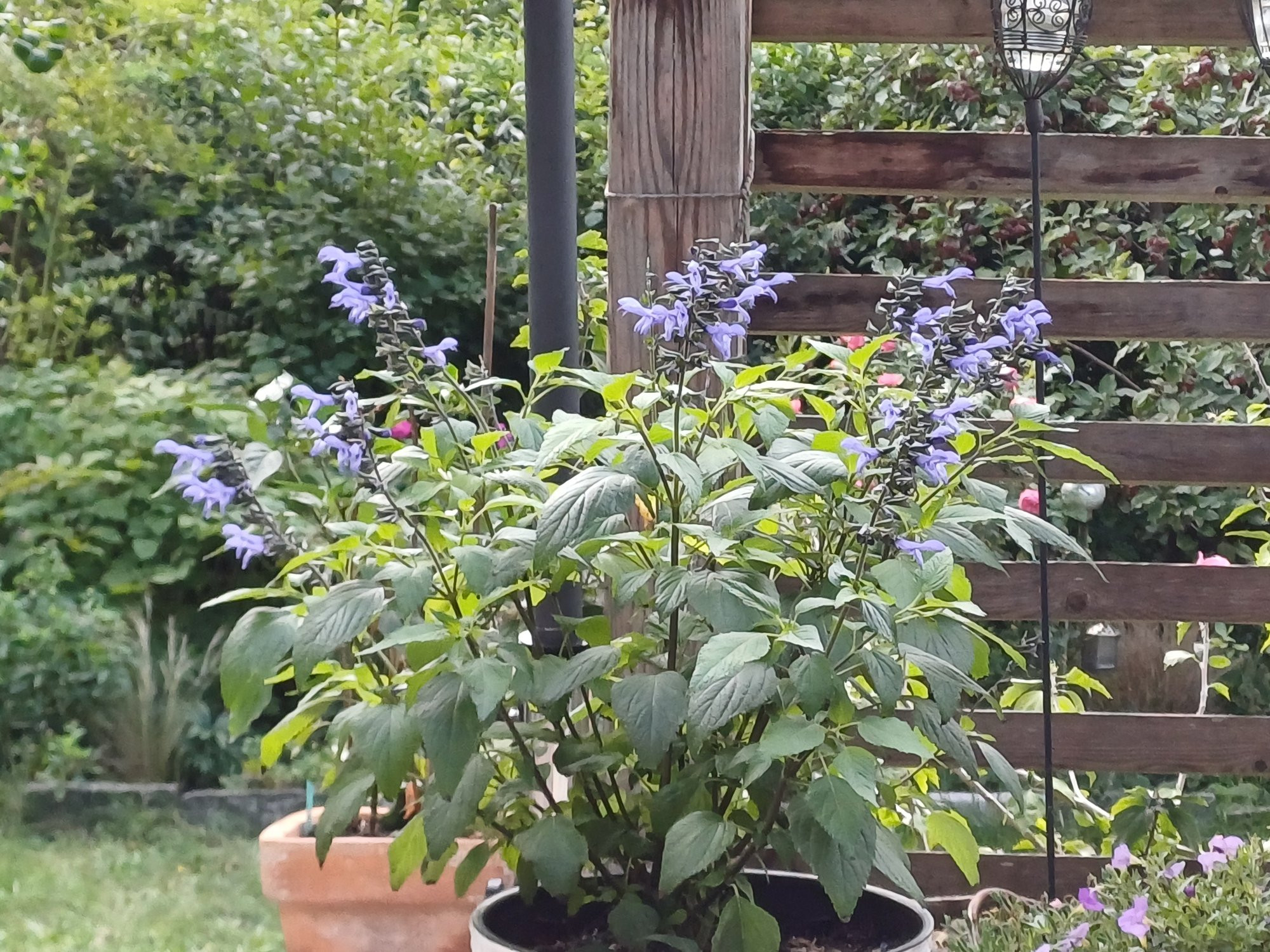 Das Pflänzchen sieht gar nicht winterhart aus. Könnte eine Salvia farinacea-Hybride sein.