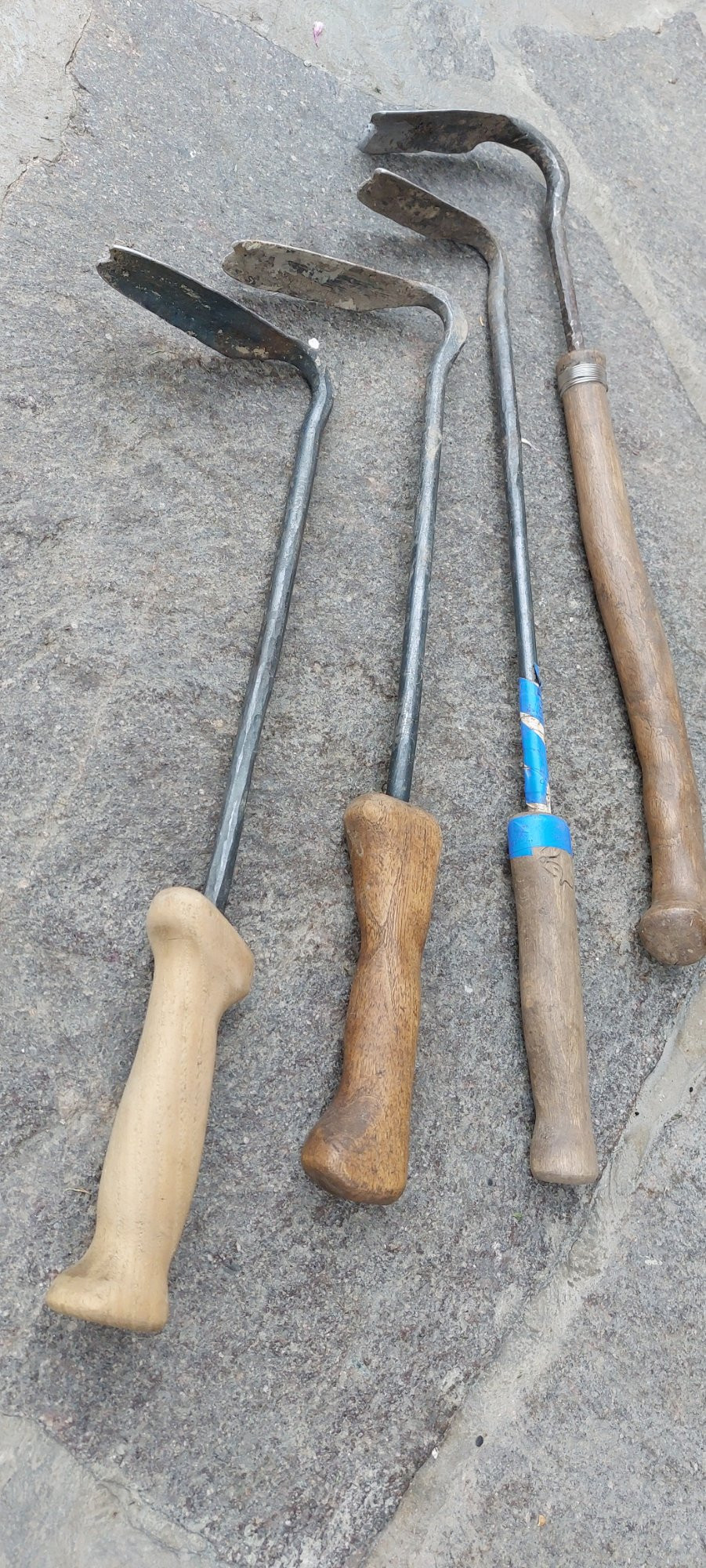 Stattdessen habe ich von den Nachbarn ein paar alte handgeschmiedete Hacken bekommen. Neuen Stiel dran und los geht's.