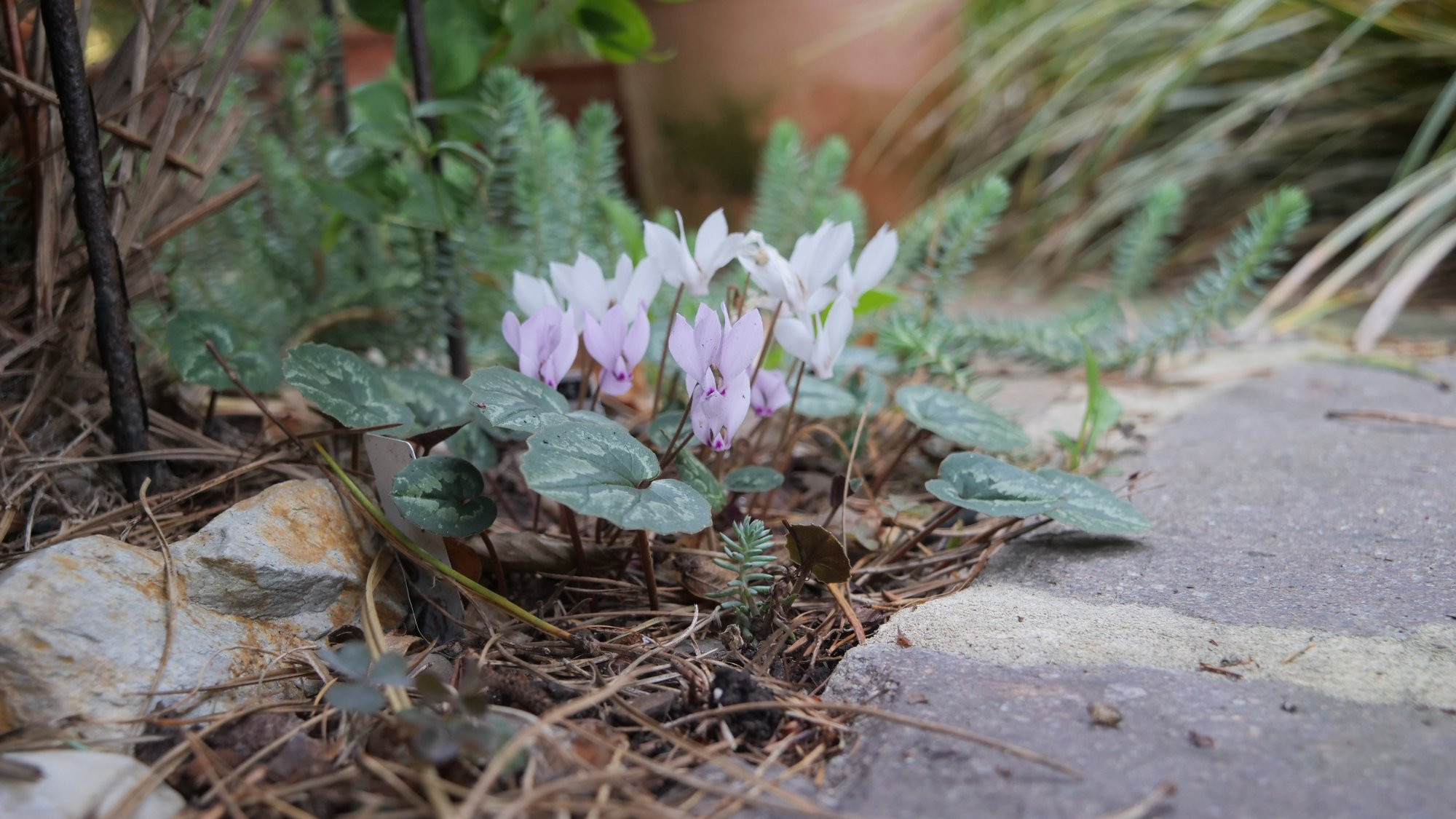 Das rosa und das weiße C. cilicium zeigen große Ausdauer. Die Blüten des Weissen sind deutlich größer, während die Laubblätter keinen Unterschied zeigen.