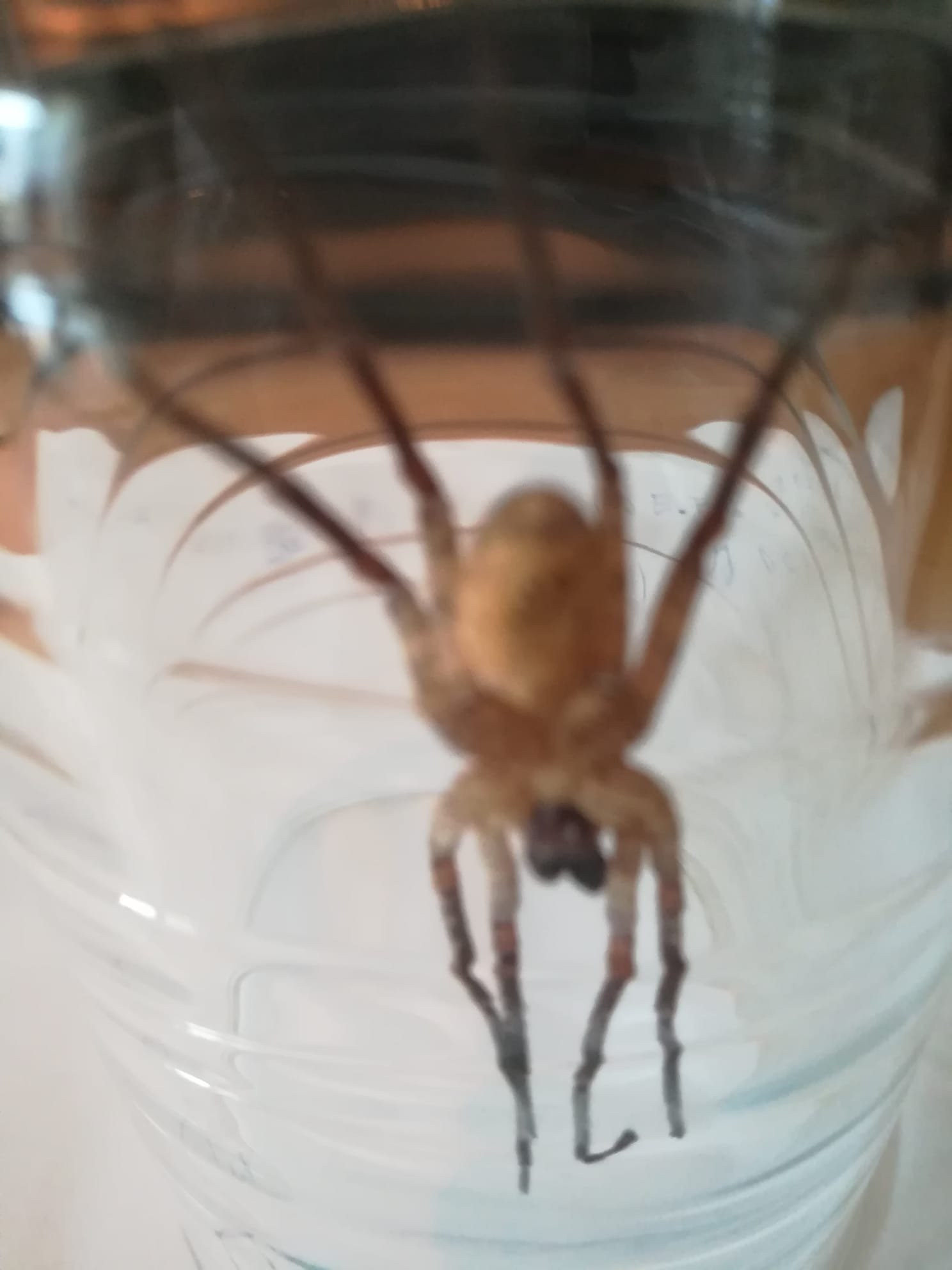 Die großen Spinnen leben doch meist unter Töpfen und Steinen, bei uns vor allem im Keller unter den Klappkisten mit Töpfen. Irgendwelche Wolfsspinnen, glaube ich.