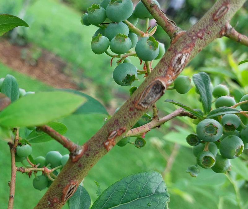 Die ersten Kulturheidelbeeren sind hier seit ein paar Tagen genußreif.