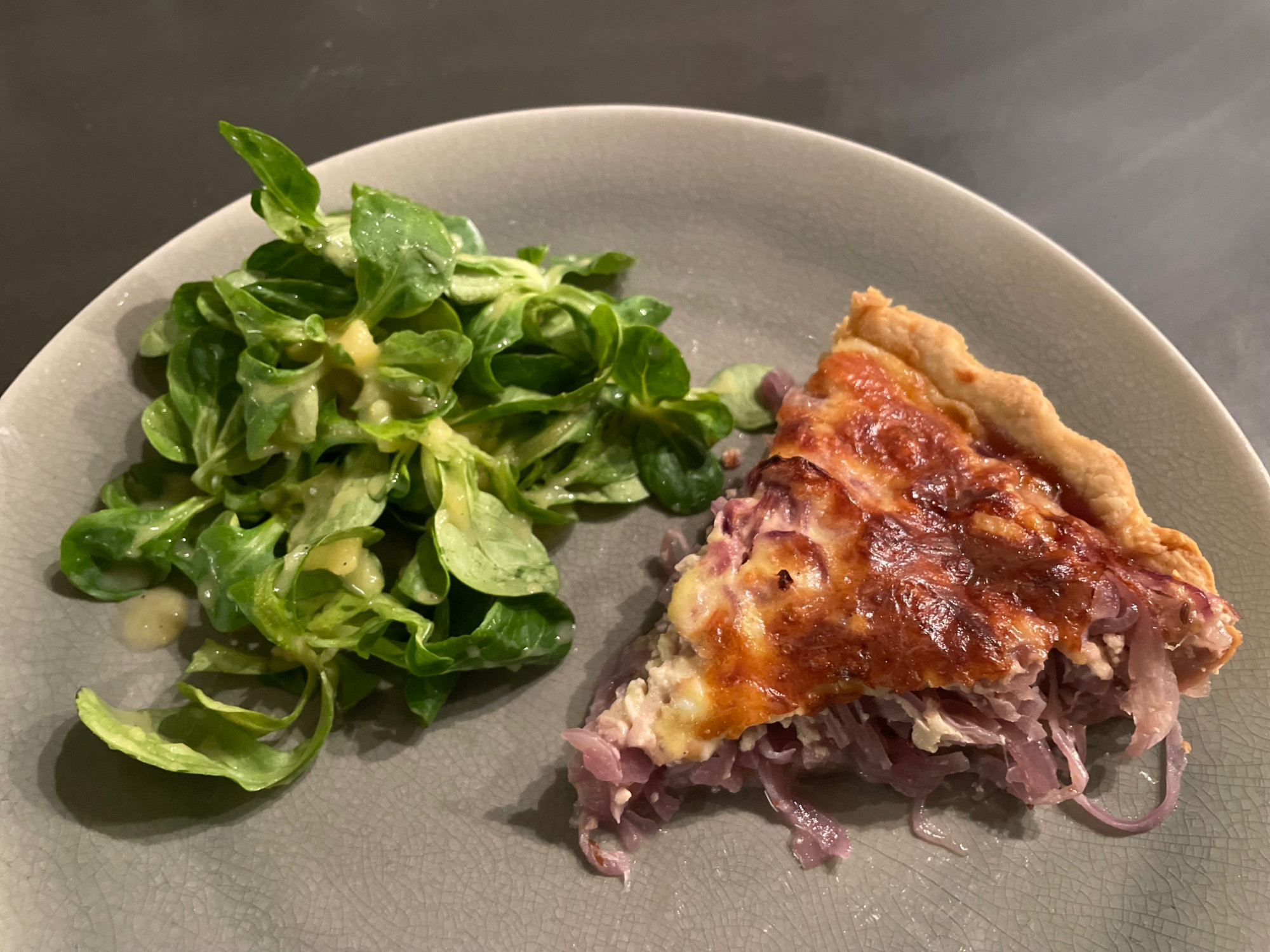 Bei uns gab es heute Zwiebelkuchen nach diesem Rezept.
