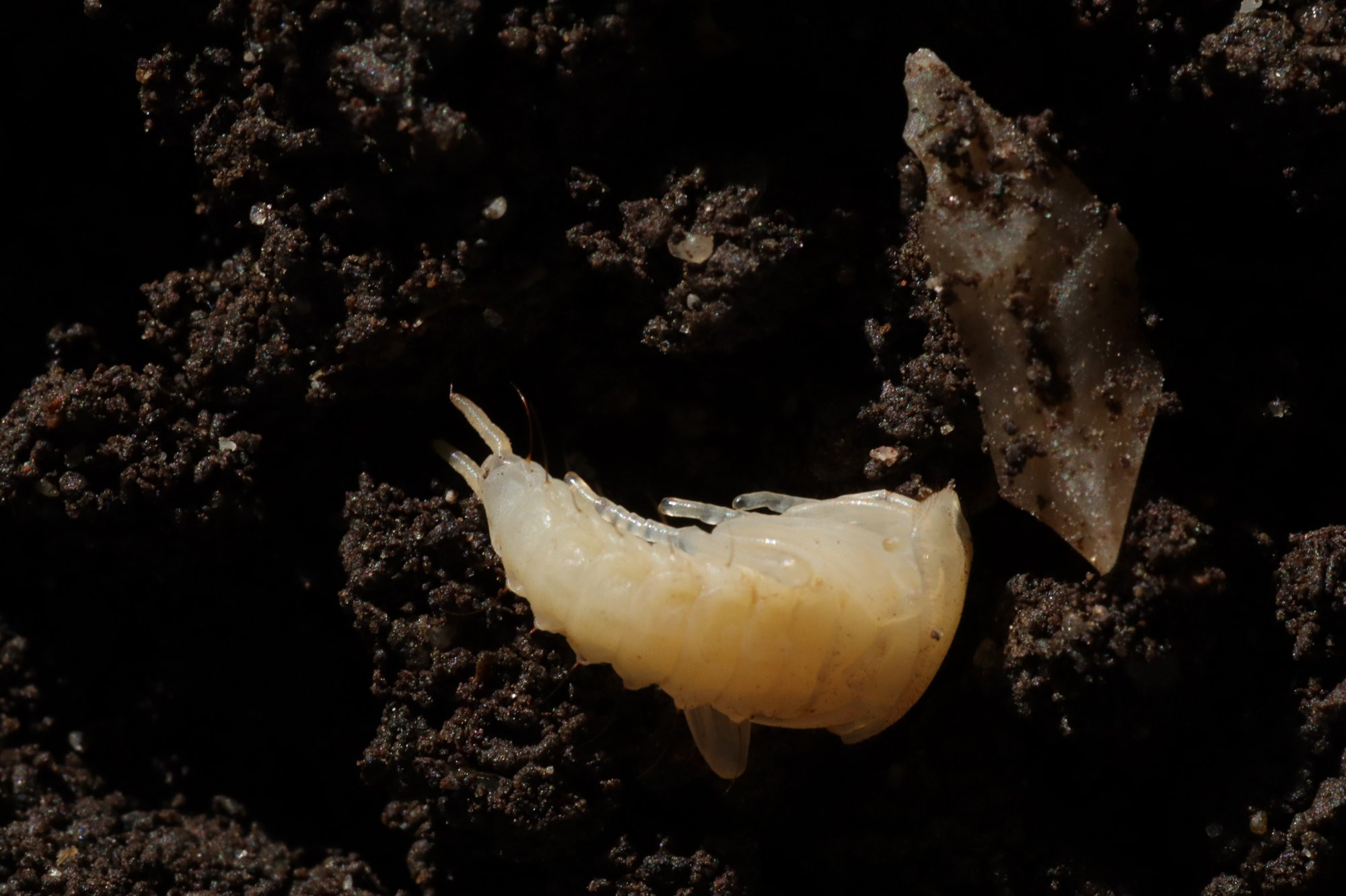 Beim Durcharbeiten der Töpfe im Gewächshaus entdeckte ich dieses Wesen in der Erde eines Topfes, das ich zuvor noch nie gesehen habe. Ca. 1 cm lang. Der Vorderkörper wird wild hin und her geschleudert, wenn es sich gestört fühlt.