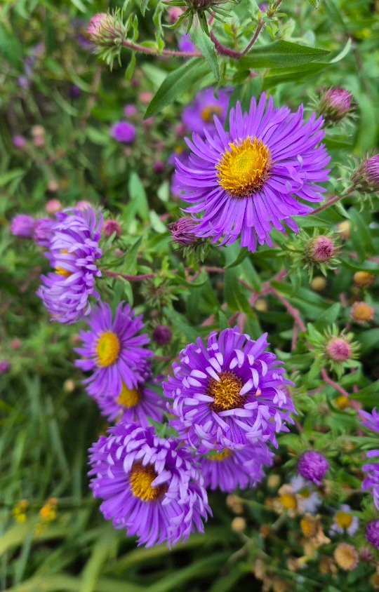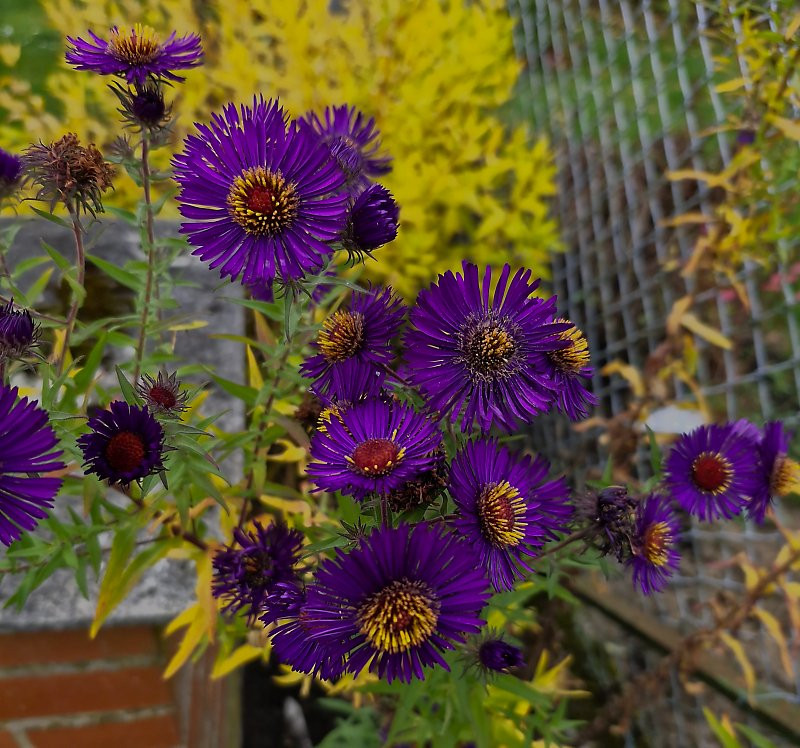 Meine Astern waren immer schön, aber in letzter Zeit etwas sich selbst überlassen. Jetzt wo sie blühen, mache ich gerade eine Bestandsaufnahme. Die novae-angliae Sorten sind ja noch zahm, aber bei den anderen herrscht wildes Durcheinander.