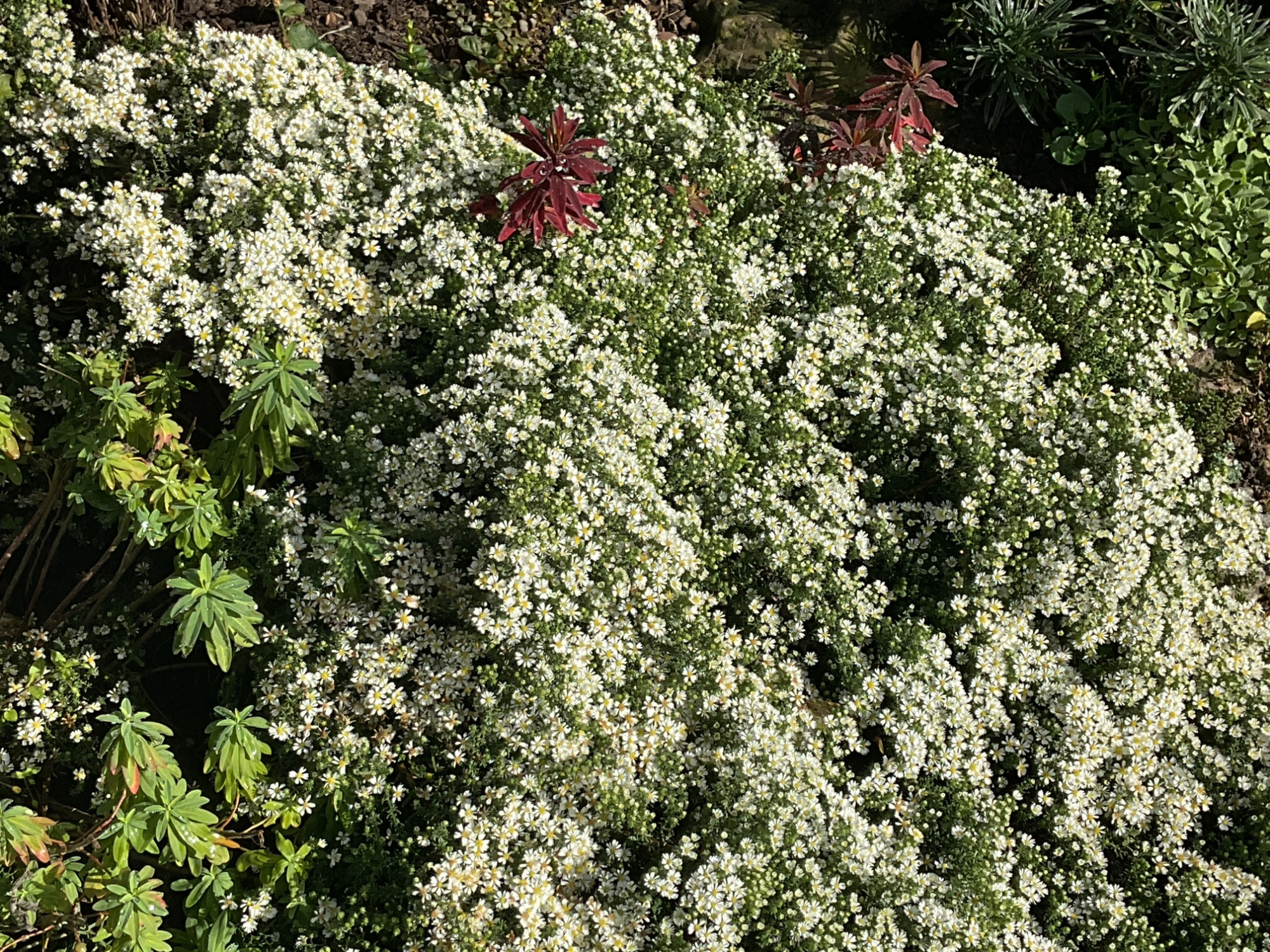 Die letzte Aster, die bei mir in Vollblüte kommt ist Snow Flurry. Die Wuchsform macht sie besonders