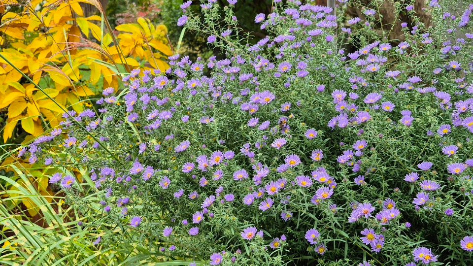 Aster amethystinus 'Freiburg' fängt gerade an;