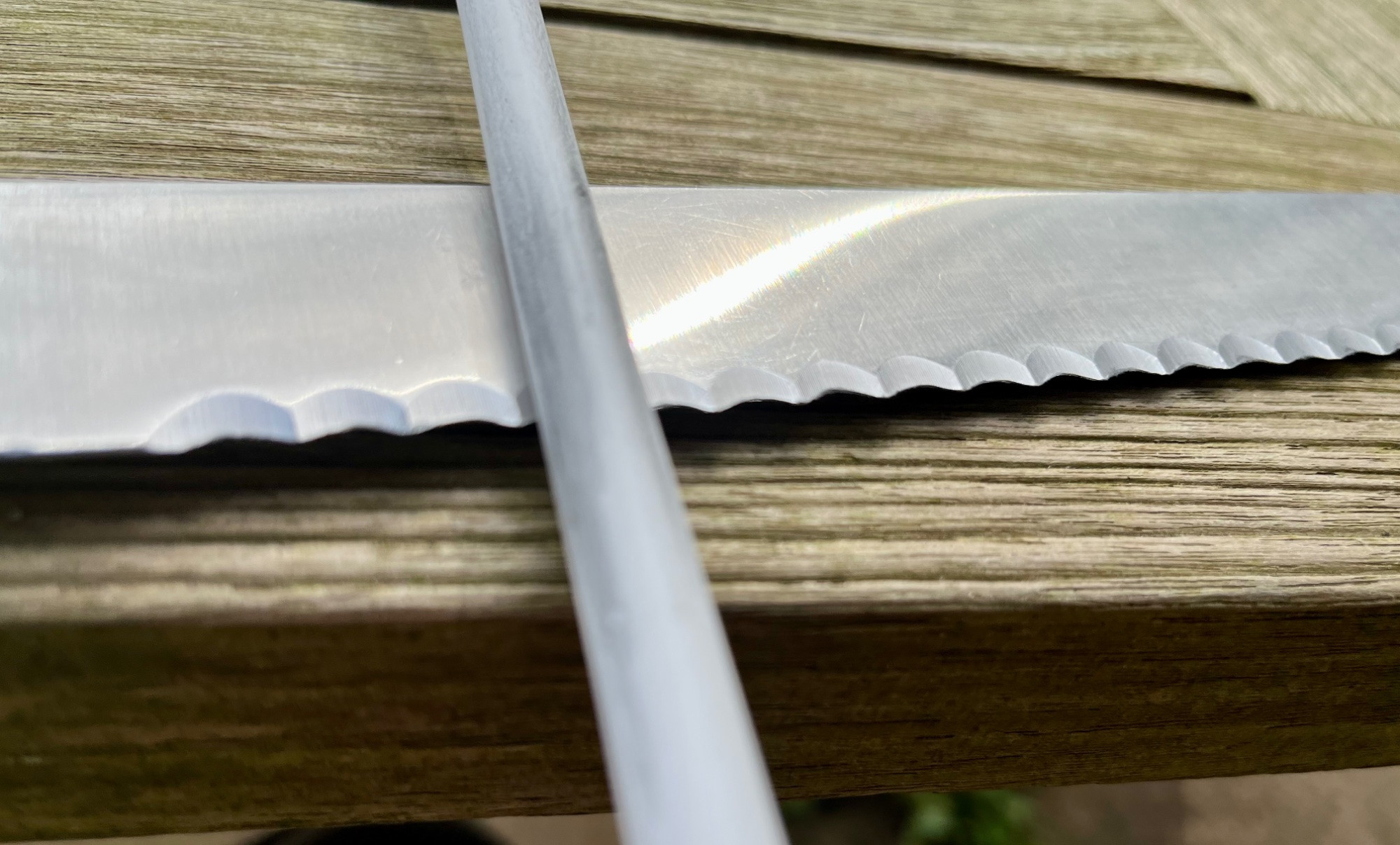 Ein Brotmesser zu schärfen ist noch mal eine besondere Aktion, ich suche gerade einen Schleifstab für mein Güde Brotmesser, gar nicht so einfach. Vor ein paar Jahren dachte ich, mir ein neues Messer zu kaufen als das alte nicht mehr scharf war, ich hatte keinenAhnung was so ein Messer kostet, meins ist das einfachste der Güde Serie und trotzdem kostet es über 100€, also ist schärfen angesagt.