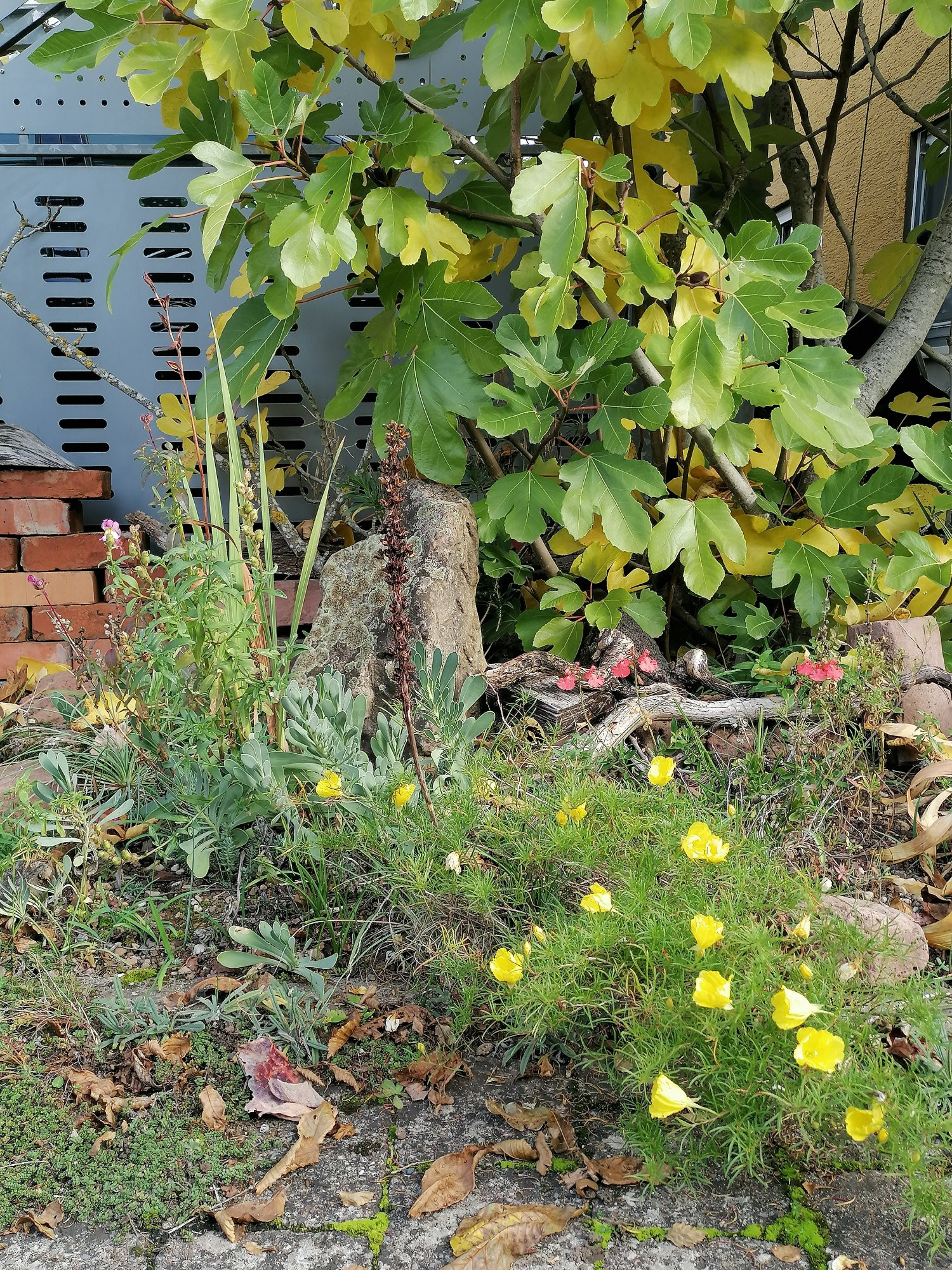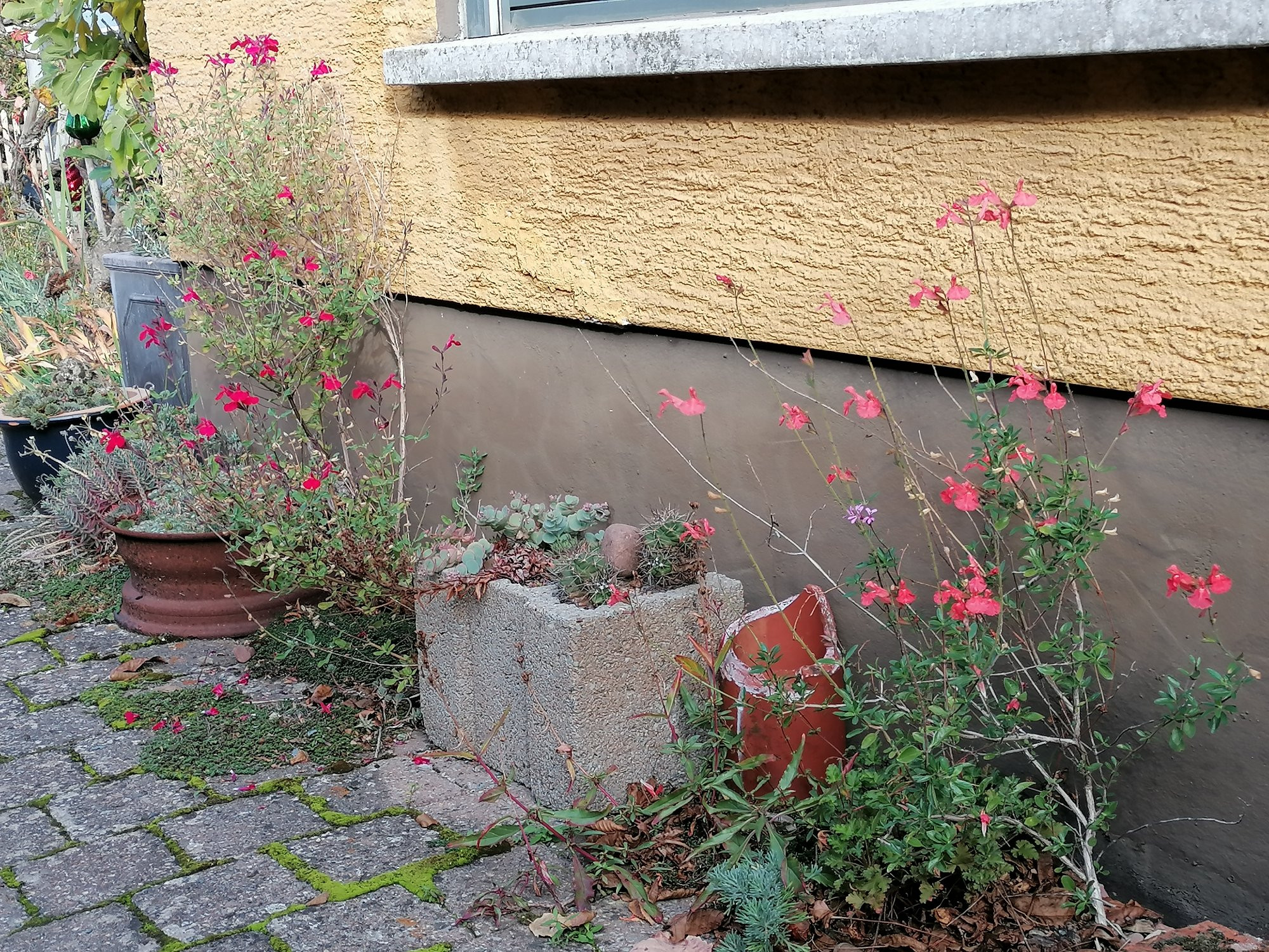 Daneben noch Mexikanischer Salbei und auch schon seit Juni die Strauchnachtkerze Calylophus serulatus.