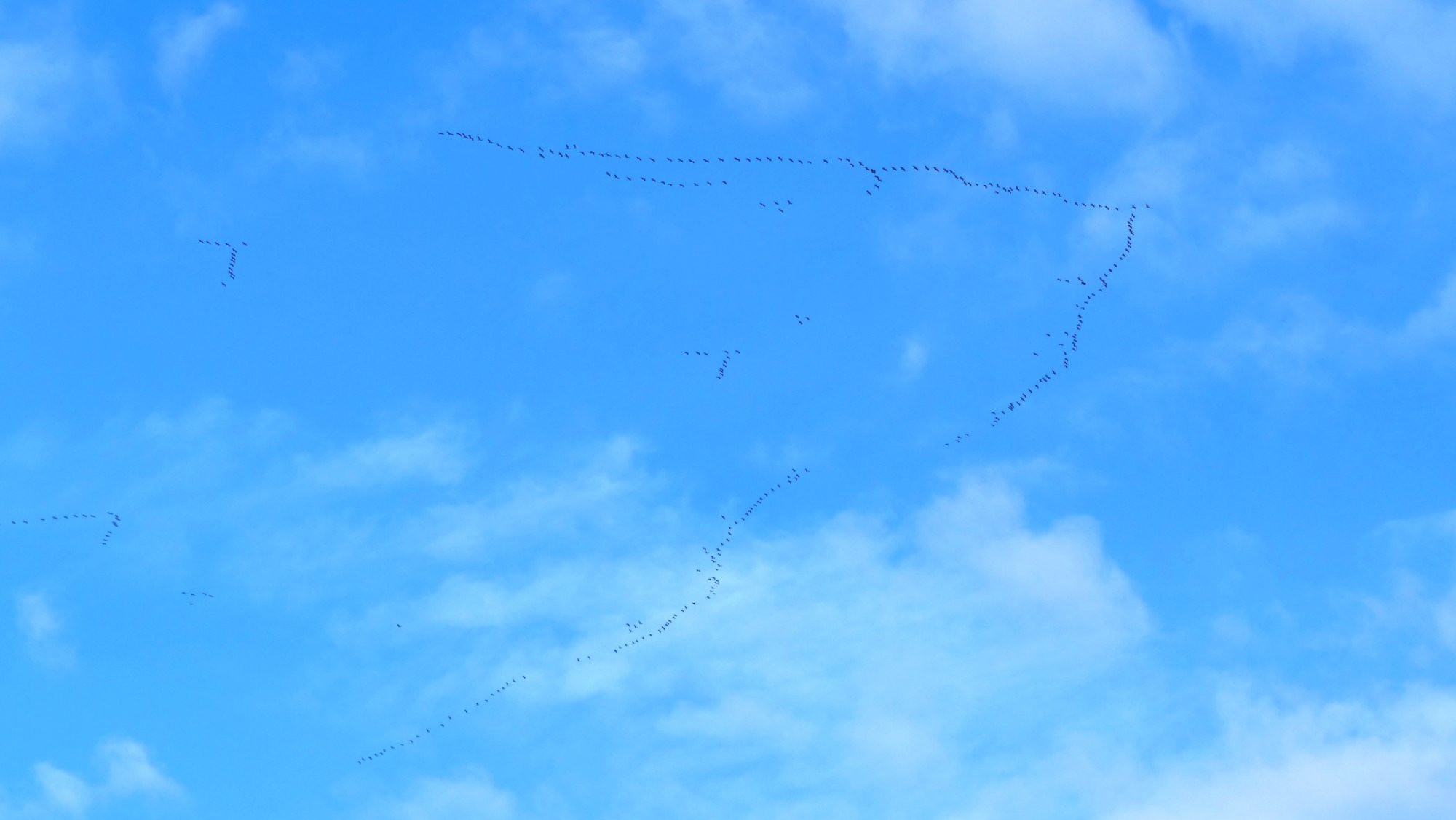 Vor ein oder zwei Wochen zog eine Formation Kraniche über unser Haus. Seitdem habe ich noch keine weiteren Vögel gesehen oder gehört.