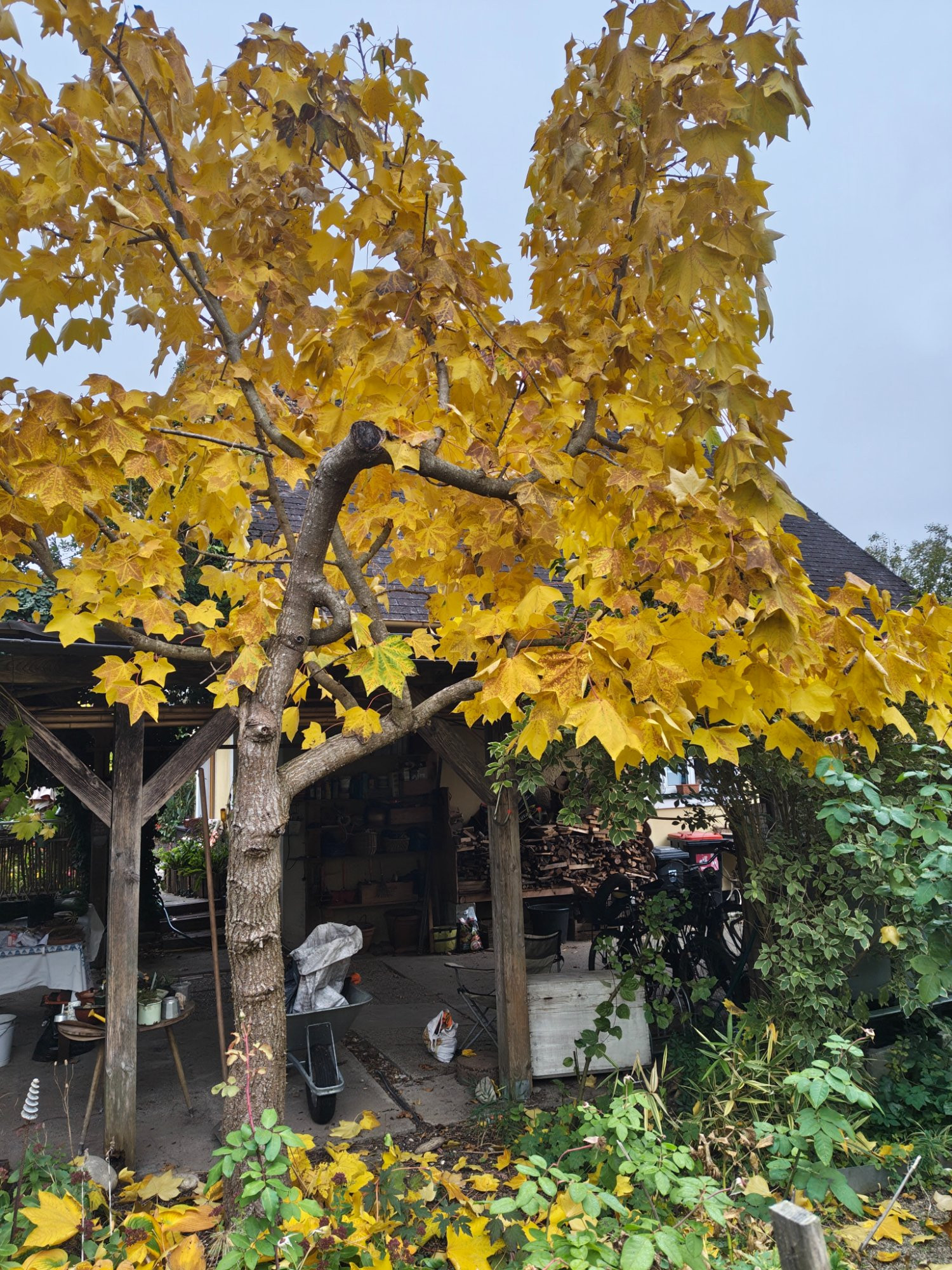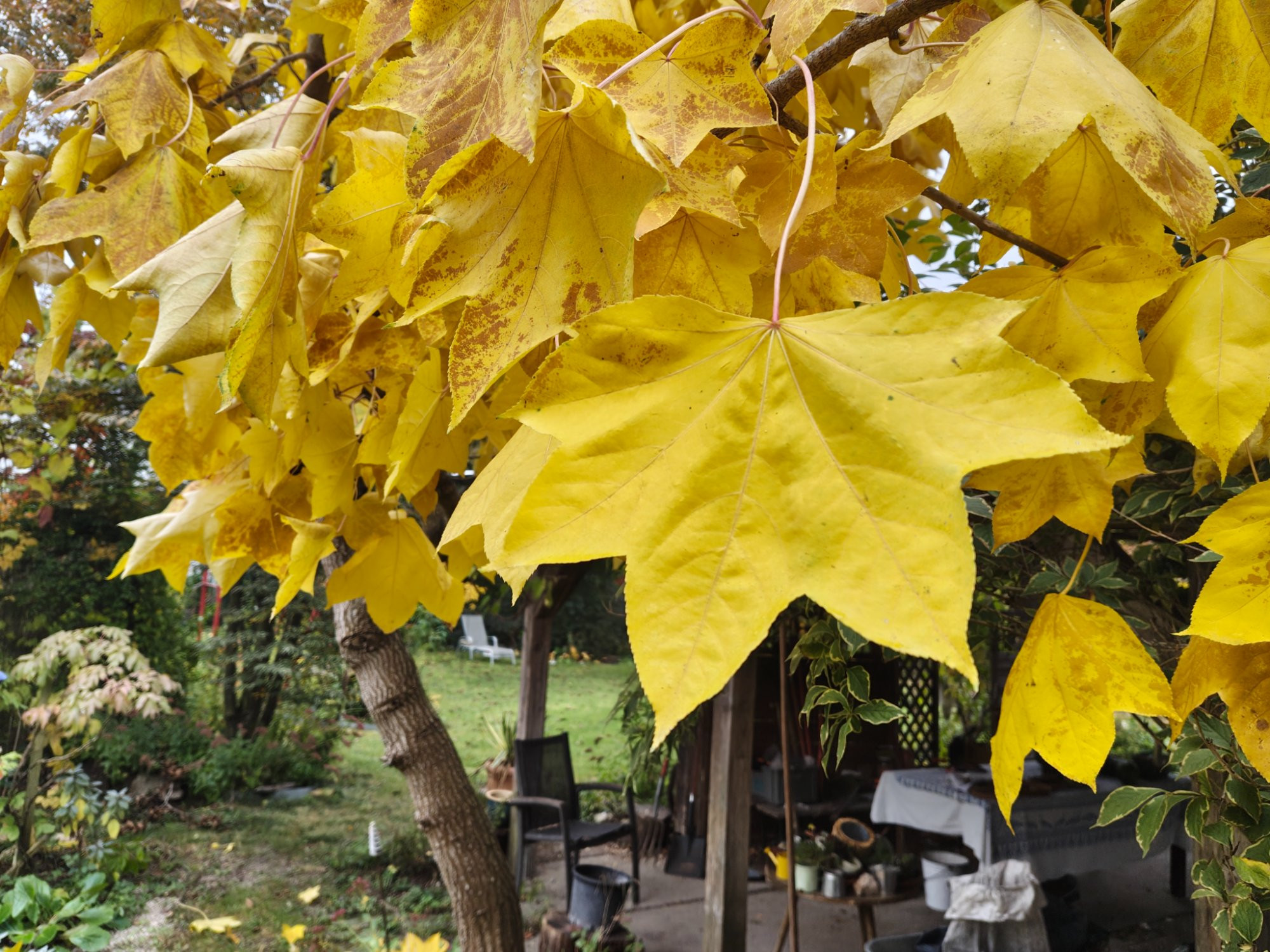 Die gelbe Pracht währt nicht lang. Zackbumm und alles liegt bräunlichgelb am Boden. Schnell zusammengerechelt und weggebracht. Der ideale Baum für Gärtner mit Zeitmangel. Der zarte Duft der Blätter hält angeblich Mücken ab und Blättertee soll ein Spritzmittel sein.