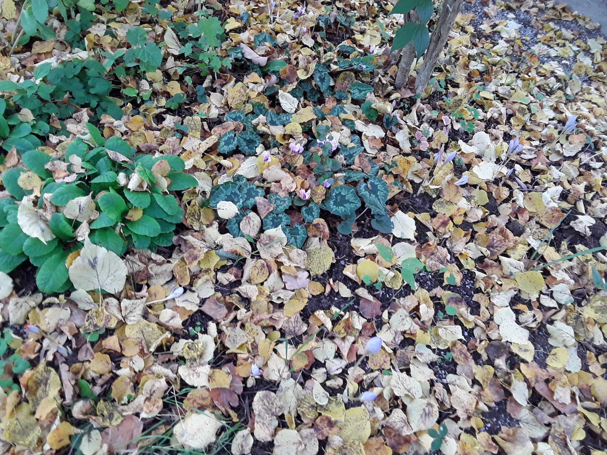 Der Herbst bringt seine bunte Blätterpracht auch als Teppich/Decke ind die Blumenbeete.