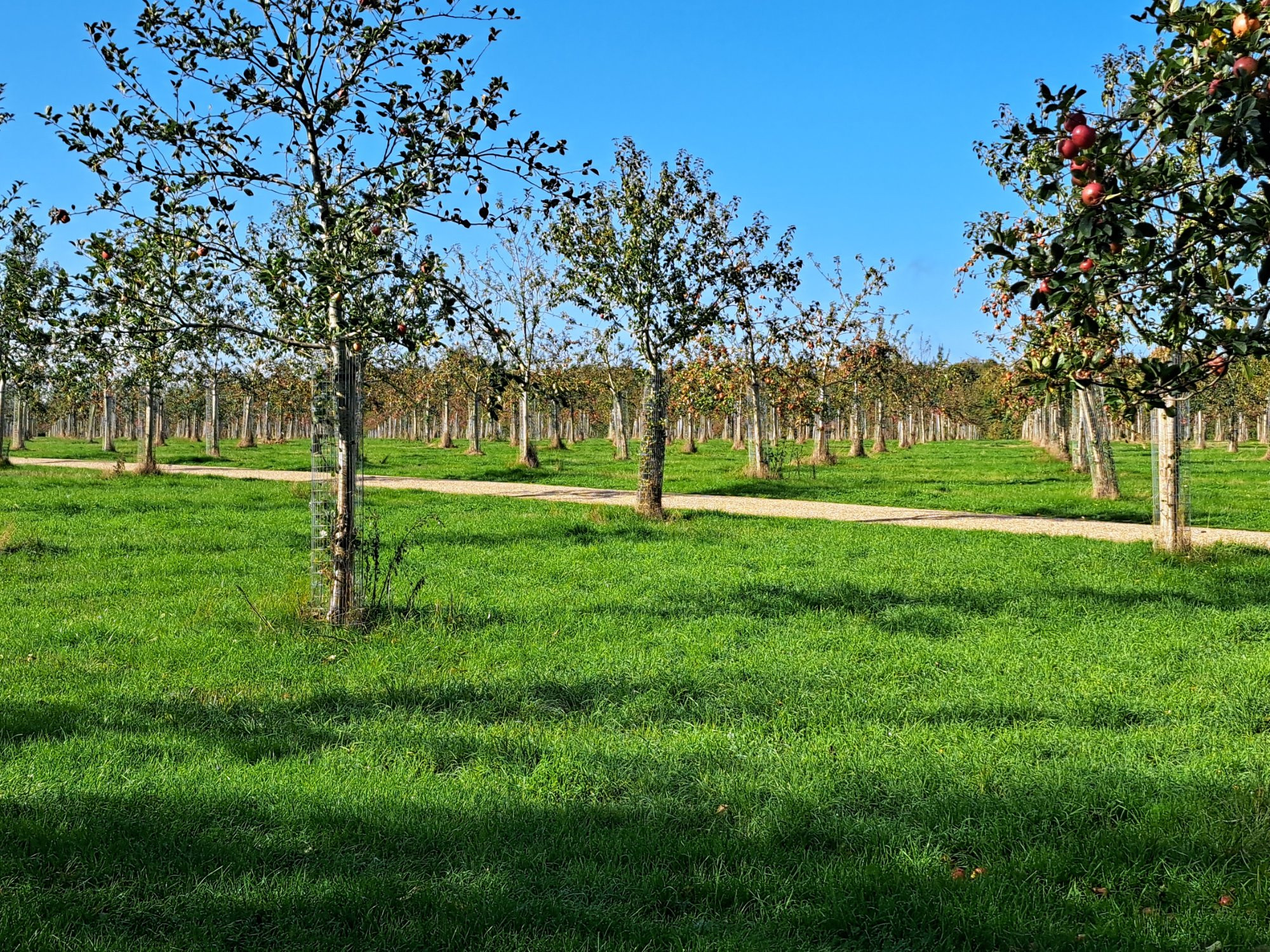 Johannisbeeren und Wein im Spalier gezogen. Hmmm, schade, von den weißnichtwievielhundert verschiedenen (einheimischen) Apfelsorten, sortiert nach Region, hab ich gar kein richtiges Foto. Alle in schmalen Spalieren, manche Spaliere hüfthoch gehalten, andere höher und im Bogen.