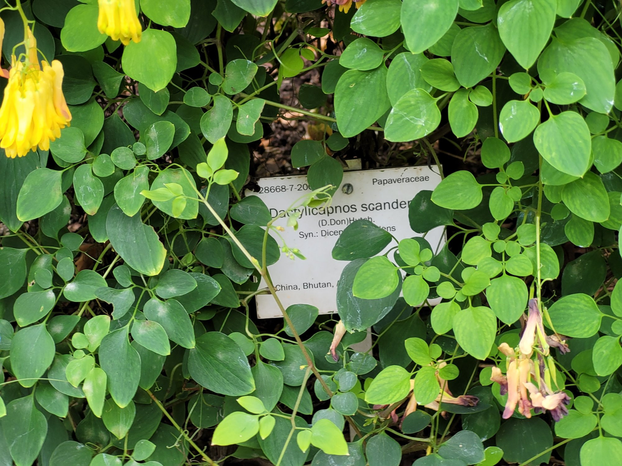 Hier hatte heute der Ranunkelstrauch eine einzelne Bluete. Im Fruehjahr hatte da nichts geblueht; allerdings war auch vom Strauch selbst damals eigentlich nichts zu sehen.