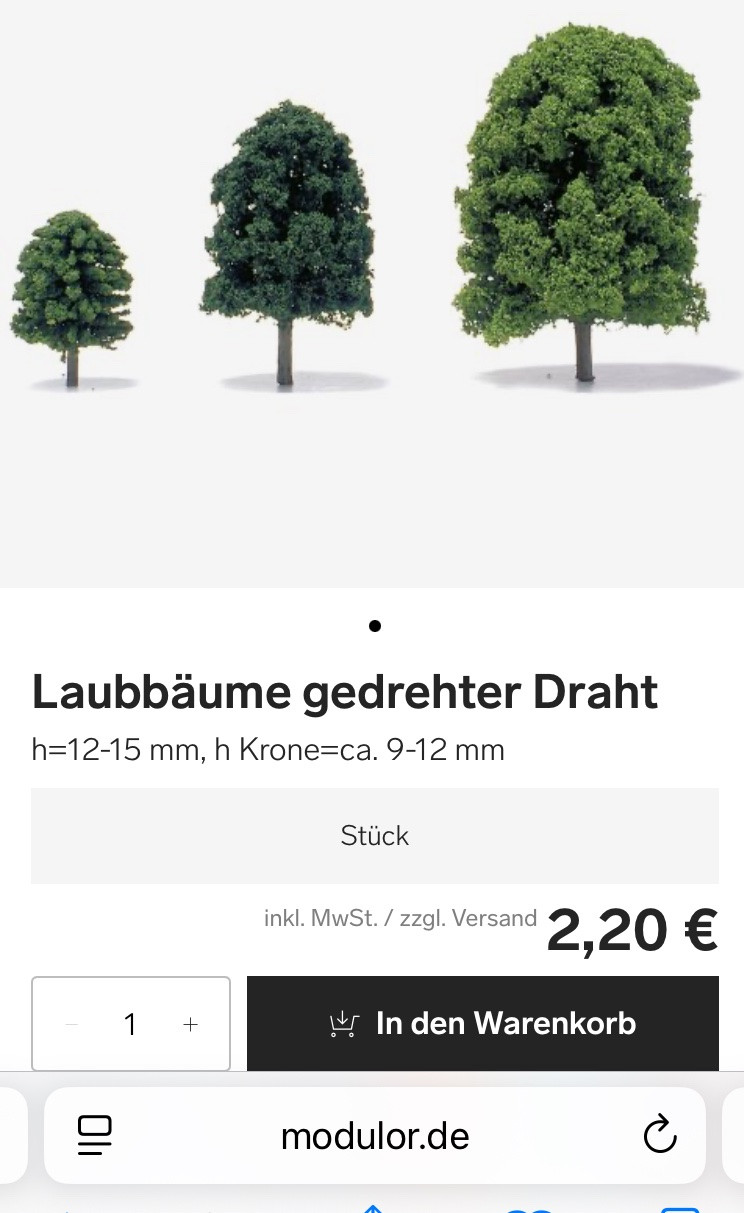 Für Modelleisenbahn gibt’s sehr viel, Strukturen, Bäume, Hecken, Wegebeläge, Gras….in verschiedenen Maßstäben.