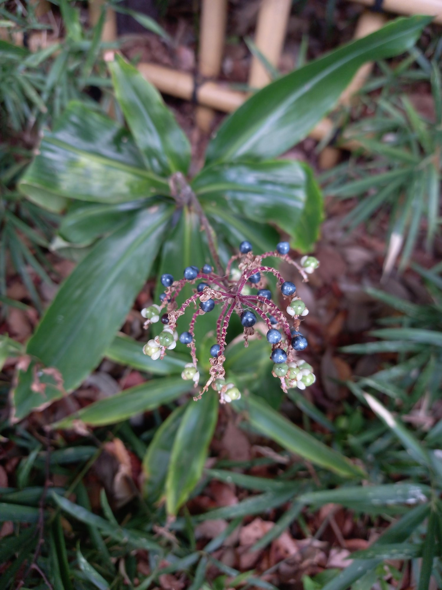 Der Habitus der Pflanze und die Blätter erinnern mich sehr an Dichorisandra thyrsifolia, die Blütenstand könnte vielleicht auch passen, aber mit früchte habe ich keine richtige fotos gefunden.