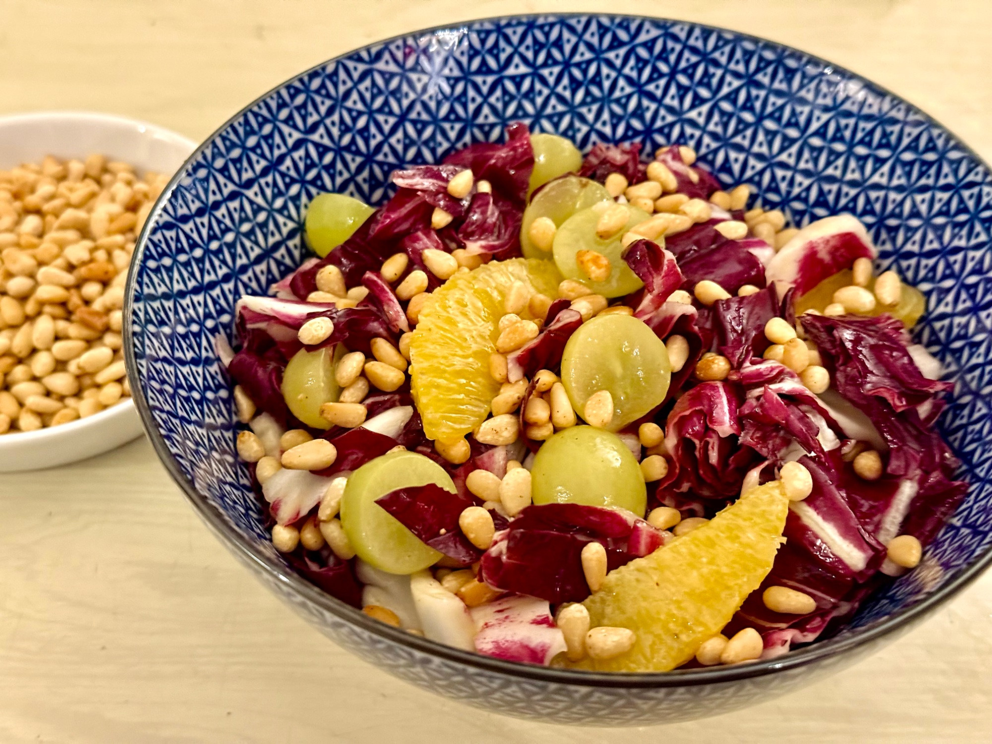 hier gab es salat: radicchio mit trauben, orangenfilets und pinienkernen