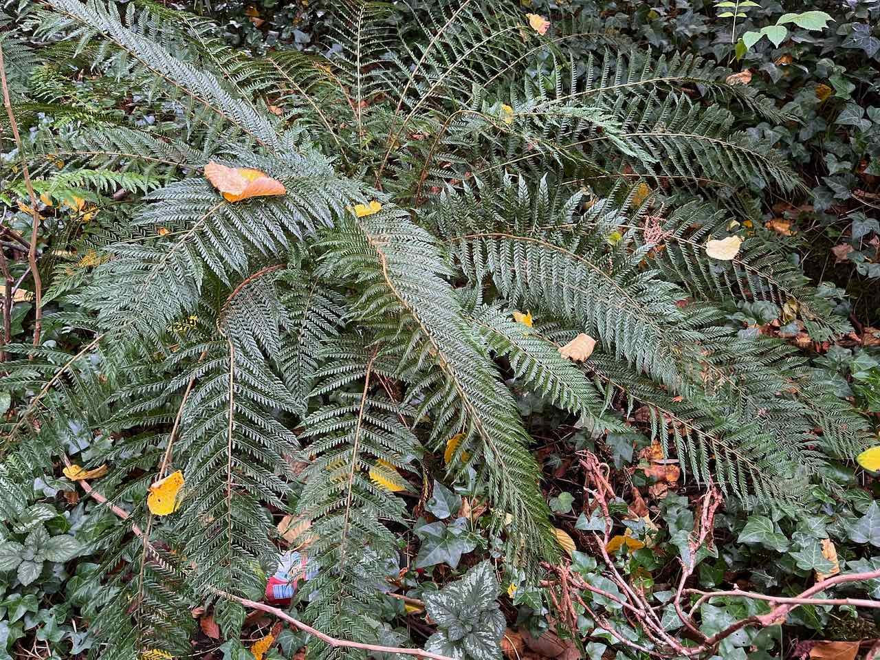 Einen ganz anderen "Garteneinblick" hatte ich heute, als ich nach zwei Jahren (ja, das gibt es) mal wieder die schwer zugängliche Südwestecke meines Gartens betrat: ein Farn von gut 1,5 m Breite wächst dort im Schatten meiner Davidia: