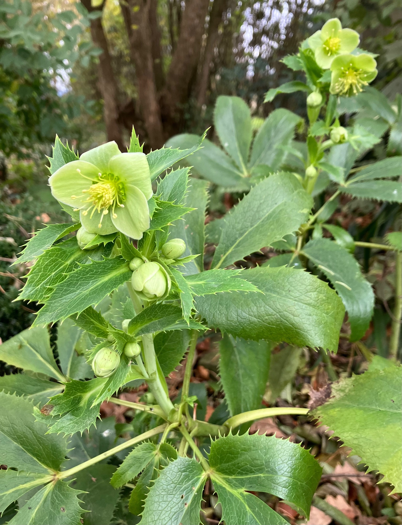 Helleborus argutifolius war hier noch nie so früh. ( Sie und ich, wir sind uns einig, der Winter fällt aus.