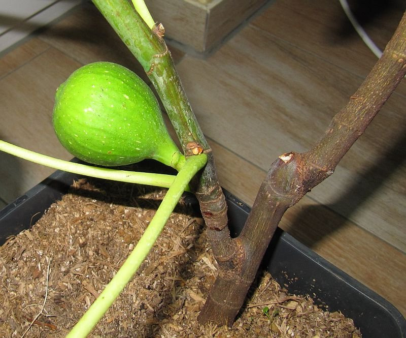 Diese Feigen Nr. 1 hat auch zwei Früchte dran, die seit Wochen gleich aussehen.