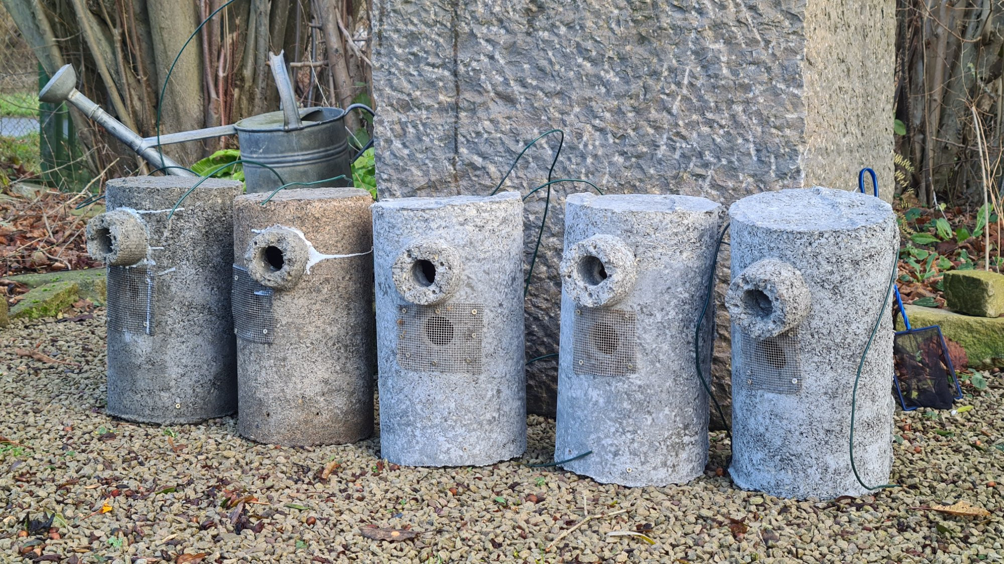 Um mein Haus sind auch alle Brutplätze verwaist, nur um den Schrebergarten werden alle aufgehängten Kästen besetzt. In der Nähe Sportplatz mit großen Radenflächen, große 1-2 schürige Wiesen im Wasserschutzgebiet und seit einer Weile auch Extensivweiden mit Rindern. In dem Bereich hänge ich alljährlich 5-10 neue Kästen auf. Ich bin dazu übergegangen, sie selber aus Holzbeton zu bauen, da bei den Mengen viel billiger. Man muss einen Waschbärschutz anbringen, sonst werden die reihenweise geplündert. Daher die Nase vor dem Einflug. Das vergitterte Loch darunter soll sie bewegen, das Nest nicht zu hoch zu bauen, damit es außer Reichweite eines Waschbärenarms bleibt. Ich baue sie deutlich größer als übliche Starenkästen.