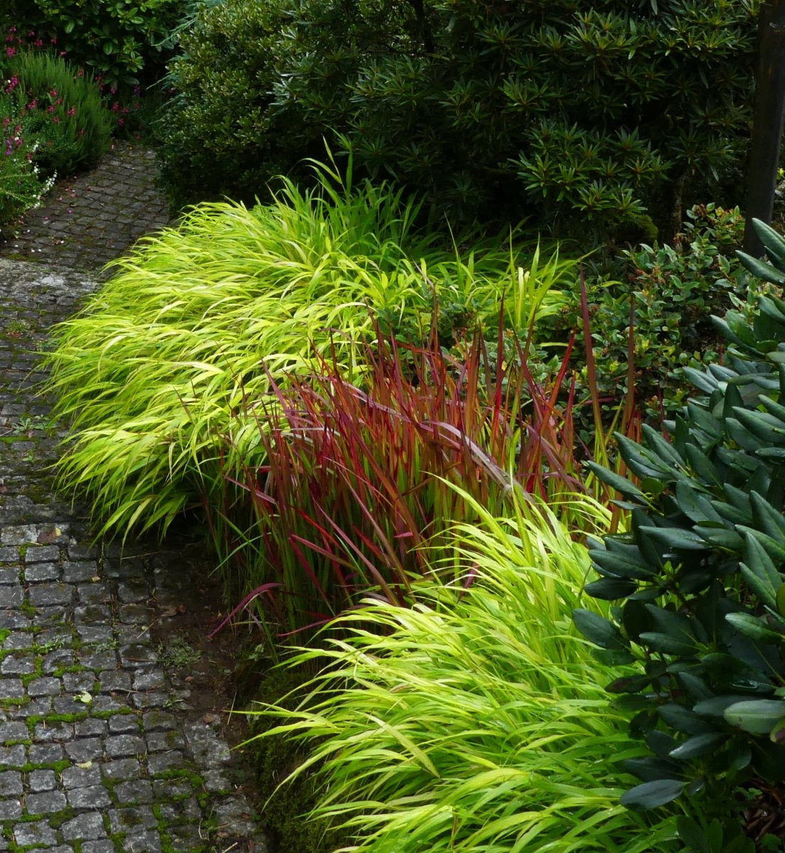 Hier ist im Kontrast zu Hakonechloa 'All Gold' die Farbe natürlich auffälliger.