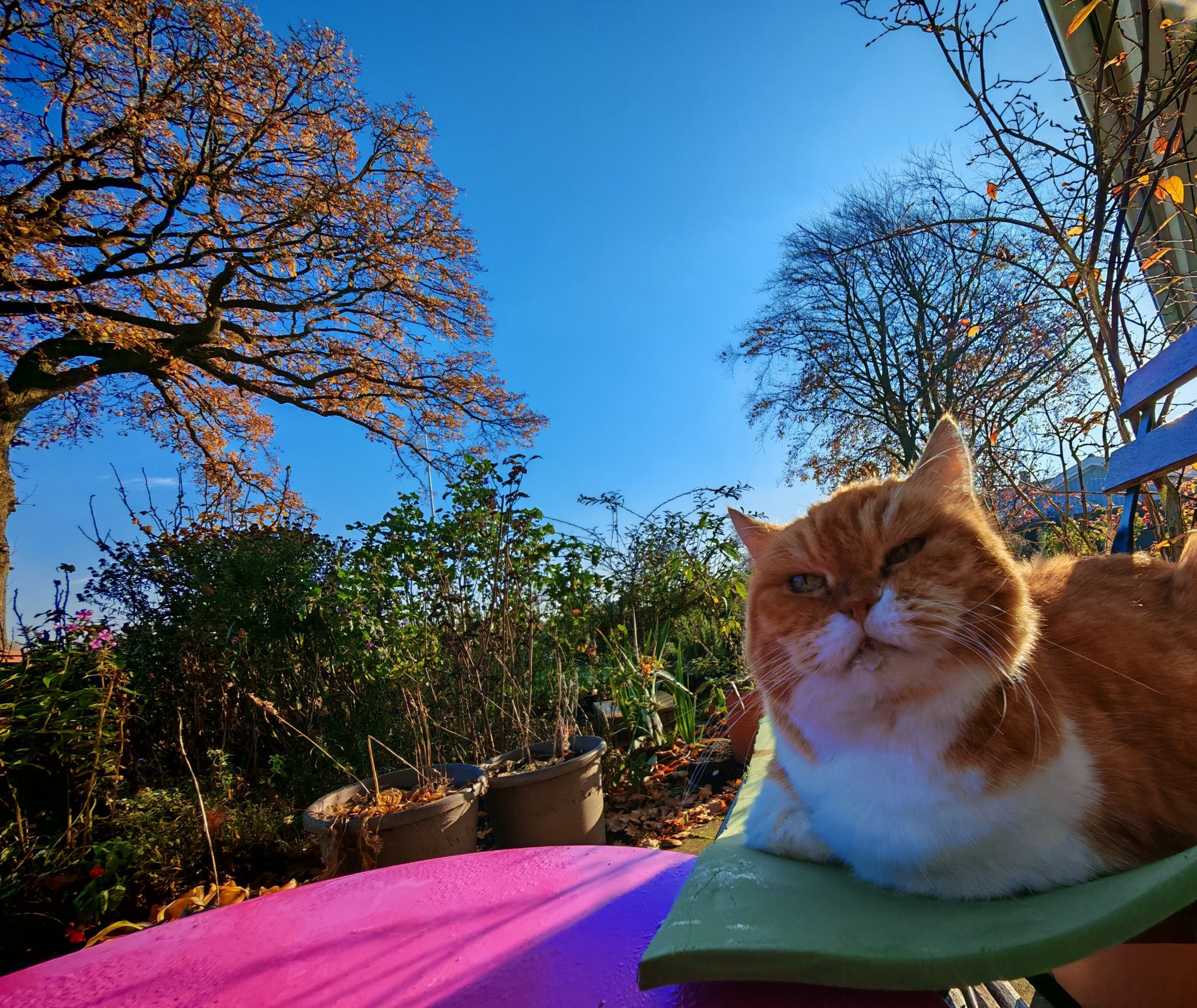 Nach dem Rutschetrinken hat sich Omi unerwartet den Stuhl erobert, habe ihr die Matte untergeschoben und wir genießen etwas Sonne.Ich liebe dieses Schlabbertröpfchen am Kinn