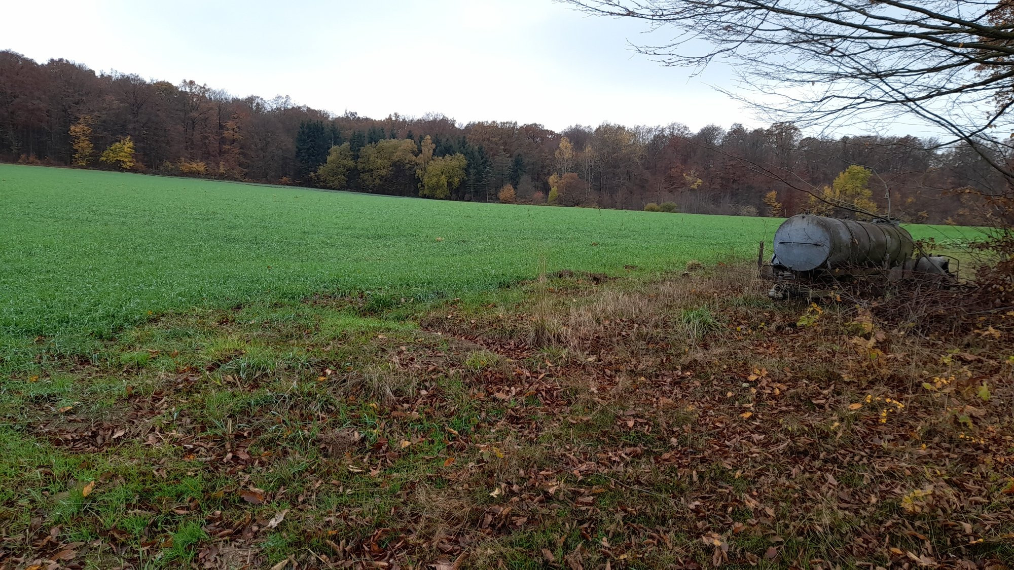Das war letztes Jahr noch Grünland. Jetzt Acker. Dahinter müsste der Wald schon FFH Gebiet sein