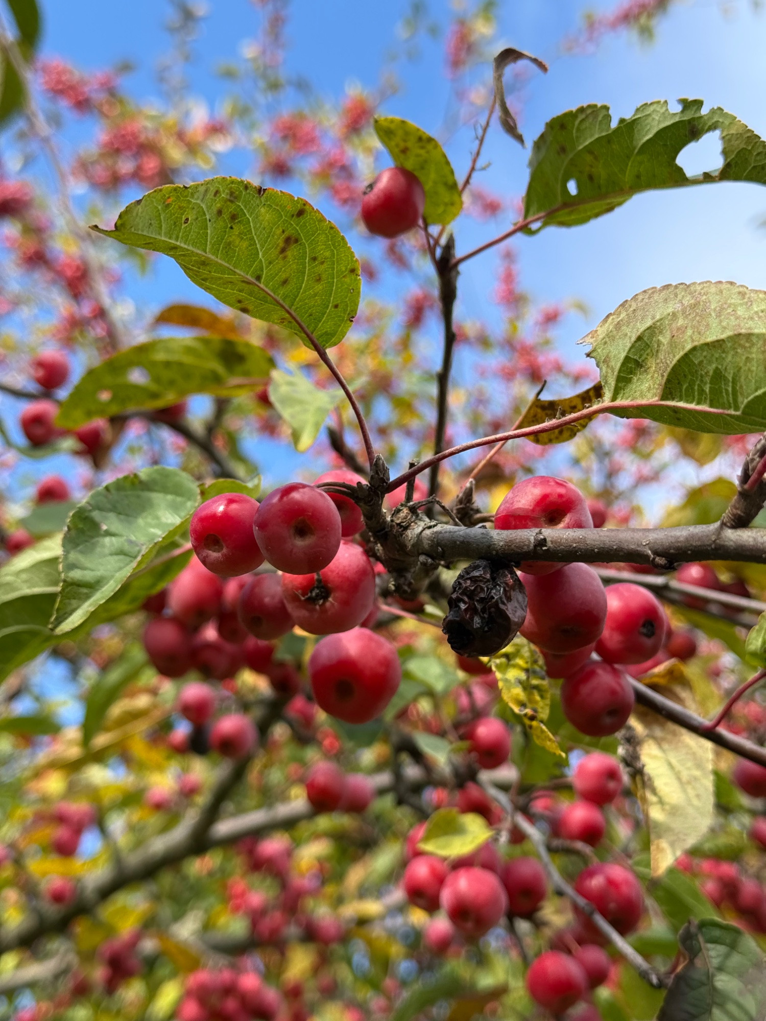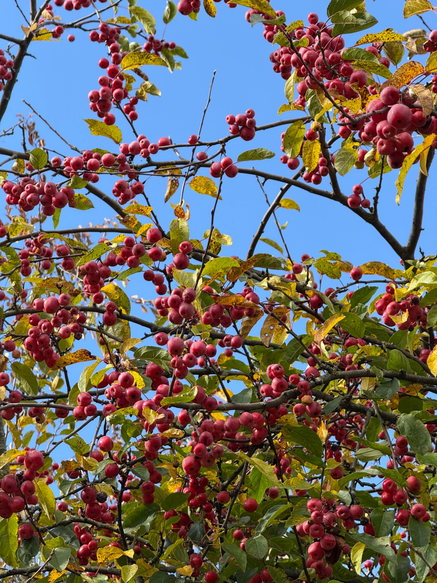 Schön für die Vögel schlecht für die Fruchtschmuckwirkung ich denke in ein paar Wochen wird der Baum schon abgefrühstückt sein.
