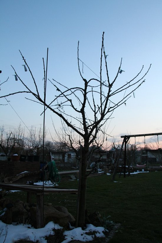 Die Leitäste sind auf ca. 112-115cm Höhe. Ein Jahr verlieren ist nicht so schlimm, wir haben ja die alte Kirsche, die ordentlich produziert. Und ich habe vor 3 Jahren eine Büttners rote gepflanzt, sie dürfte auch bald ein paar Kirschen liefern.ringelnatz hat geschrieben: ↑8. Dez 2025, 19:47 aha, jetzt hast du doch einen Sämling genommen. Auf welche Höhe sind denn die Leitäste, das sieht recht niedrig aus?