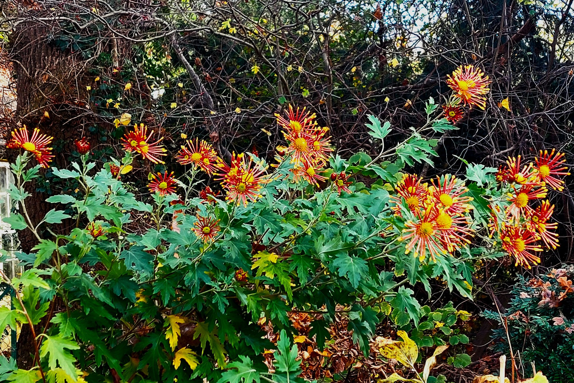Unseren Chrysanthemenbeeten hier täten allerdings zur optischen Beruhigung einige Gräser als Rahmen / Begleitstauden ganz gut -
